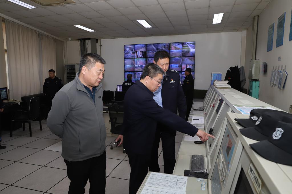 在图书馆,刘鹤一行走访了学生阅览室,询问了配电间管理情况,并提出相关修复要求。在监控控制中心,党委安全保卫部部长桑学江向刘鹤介绍了视频监控点位分布情况、火灾报警系统运行情况和值班人员值守情况。在实验楼,刘鹤检查了UPS间、核心机房和部分实验室,听取了实验实训中心主任孙钦波、信息管理中心副主任张健鹏相关情况汇报。
