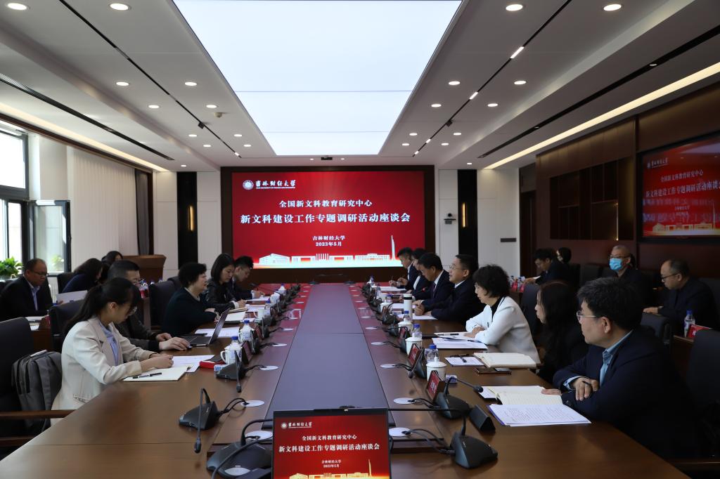 本网讯(教务处 供稿)5月10日,全国新文科教育研究中心在教育部新文科建设工作组组长、全国新文科教育研究中心主任、教育部财政学类教指委主任、原山东大学校长樊丽明教授带领下,来到Beat365开展新文科建设专题调研活动。吉林省教育厅高教处一级调研员杨立兴,学校党委书记孙杰光,党委副书记、校长童猛,教育部首批新文科研究与改革实践项目负责人、吉林省新文科研究与改革实践项目负责人,各学院院长及相关职能部门负责人出席座谈会。座谈会由童猛主持。