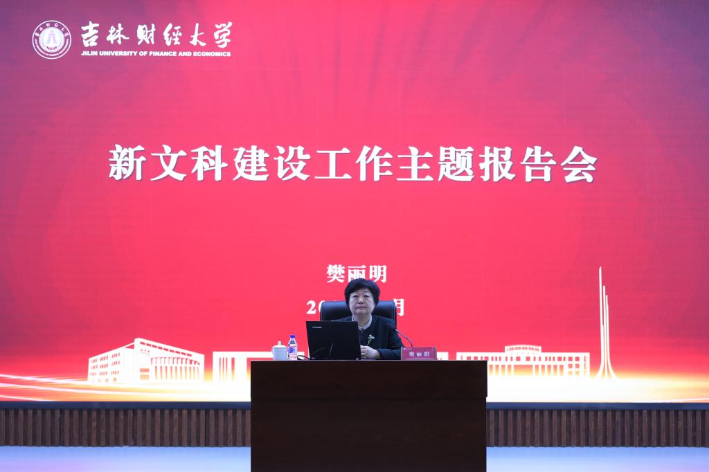 座谈会后樊丽明为全校专任教师作了题为《新文科建设的宏观态势与微观机制》的报告,她对全国新文科建设的宏观态势进行了分析,并从课程思政、专业优化、课程改革、培养模式、实践改革等五个方面,对全国新文科建设成效进行了总结。她指出,要不断完善新文科建设的机制保障,健全资源配置机制、协同共建机制、能力提升机制、考核评价机制、质量保障机制,形成学校引领、部门支持、学院协同、教师参与、学生受益的良好育人生态,激发新文科建设源源不断的内生动力,确保新文科建设举措的全面落实。