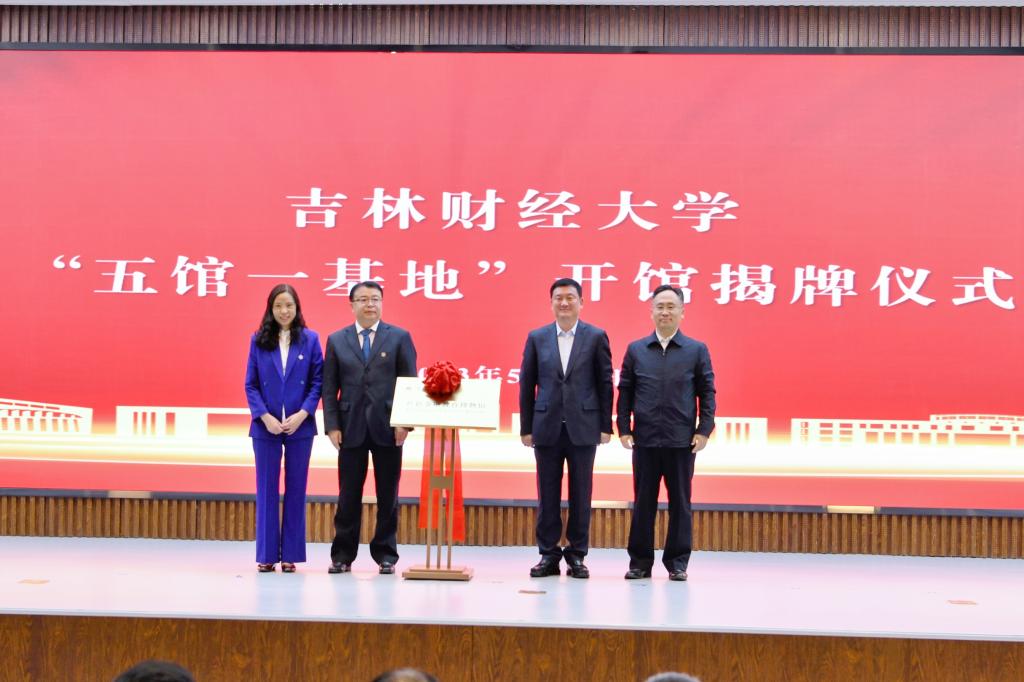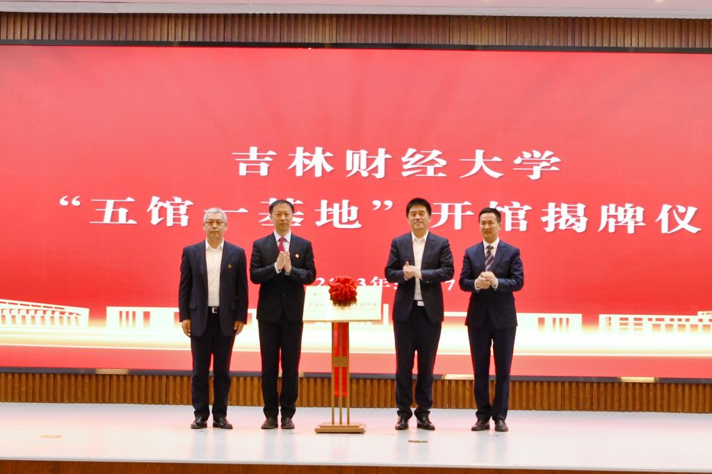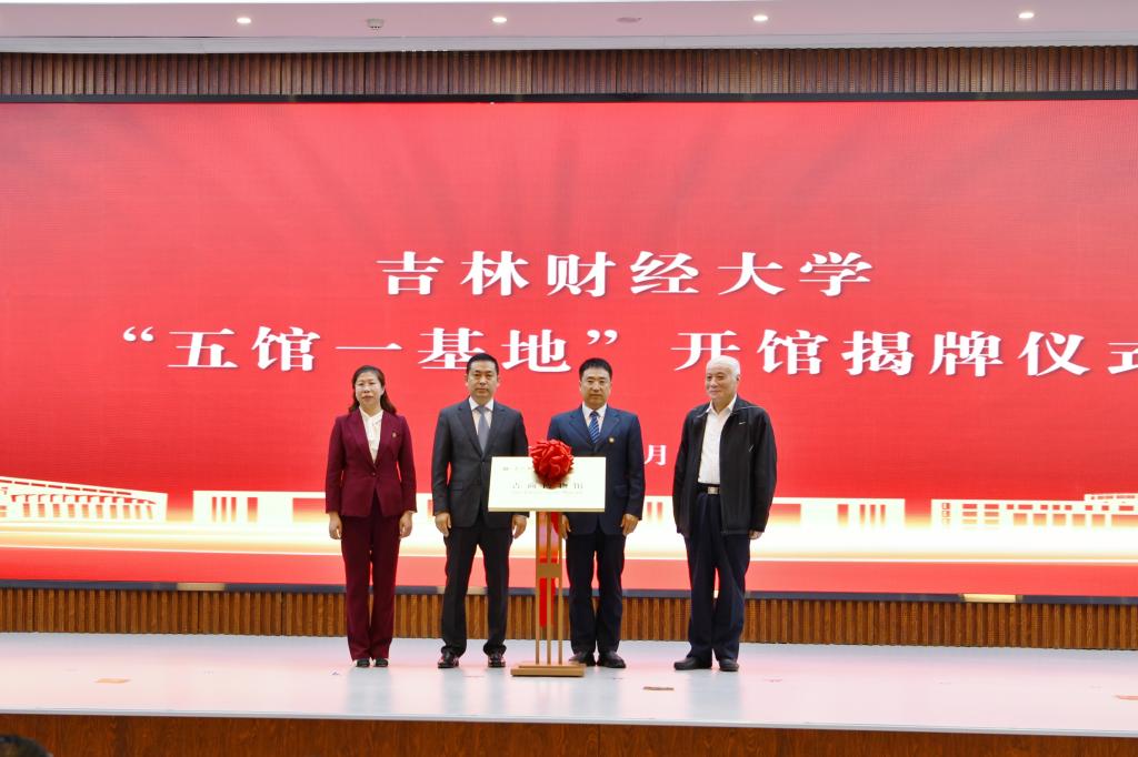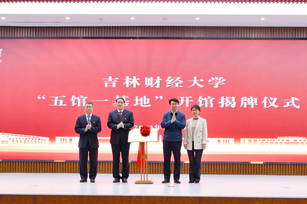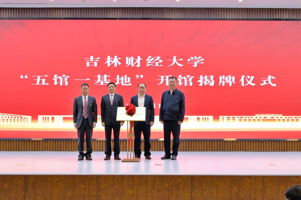 党委书记孙杰光代表学校致辞,对长期以来支持学校发展和特色文化建设的中省直部门、龙头企业、行业单位,以及所有参与“五馆一基地”建设的单位和人员表示感谢和敬意。他指出,“五馆一基地”建设是Beat365深刻把握“两个结合”的重大意义,学习贯彻习近平新时代中国特色社会主义思想主题教育与传承红色基因、赓续红色血脉紧密结合,坚持“学思用贯通、知信行统一”的生动实践。他强调,结合吉林实际和行业发展历史,认真贯彻落实习近平总书记关于教育的重要论述和繁荣发展哲学社会科学的重要论述,认真贯彻落实习近平总书记关于“历史是最好的教科书”“吉林有着光荣的革命传统,要把这些红色资源作为坚定理想信念、加强党性修养的生动教材”的重要讲话精神,坚持文化传承创新的责任,坚守“为党、为国,为区域经济发展培育财经英才的”初心使命,是Beat365建设“五馆”红色教育基地的思想源泉和根本遵循;作为红色金融教育的东北发源地和新中国第一所金融高等学校,77年的办学治校史就是在中国共产党领导下为中华民族伟大复兴投身教育兴国、教育救国、教育建国、教育富国、教育强国的光荣历史,是全体吉财人的独特基因和宝贵精神财富,是建设“五馆”红色教育基地的血脉传承、历史积淀和坚实基础;“五馆”的落成运行是学校党委和各支持共建单位贯彻落实习近平新时代中国特色社会主义思想、特别是习近平经济思想的重大举措,是探求深化“大思政课”建设、协同推进学校文化传承创新与立德树人根本任务落实深度融合的创新举措,既浸润着吉财人的初心与使命,也彰显着各支持共建单位的责任与担当。随后,他简要介绍了“五馆一基地”的建设主体与特色,并对未来展馆建设提出美好的愿景和展望。他指出,学校将把“五馆”作为思政教育和课程思政的创新平台,经济史、学术思想史通识教育和“四史”、爱国主义教育的创新基地,全面实施“四个融入、五育并举”人才培养模式综合实践的创新平台,以坚定理想信念、培育弘扬社会主义核心价值观为根本任务,将利用展馆资源和空间,与课堂教学、综合实践活动有机结合,深入挖掘经济思想、红色文化蕴含的理论逻辑、人文精神和道德规范,加大中华优秀传统文化、革命文化和社会主义先进文化的研究、阐释、宣传、展示力度,在构建自主的知识体系和哲学社会科学学术体系、学科体系、话语体系方面贡献吉财力量。他强调,将依靠各级党委和政府和共建单位、社会力量,不断完善展陈大纲,丰富展陈史料和文物,完善数字化、智能化展陈形式,建设专兼结合的讲解员队伍,充分发挥广大师生和优秀企业家、行业管理者所长,共同讲好中国故事、吉林故事、行业故事,推动中国式现代化最新理论实践制度成果和吉林全面振兴精彩实践,进校园、进课堂、进头脑,努力打造我省乃至全国高校以文化人、以文育人的创新载体,更好服务高等财经教育事业高质量发展,为坚定文化自信、推动社会主义文化繁荣兴盛和教育强国、文化强国,教育强省、文化强省建设贡献吉财智慧和吉财力量。