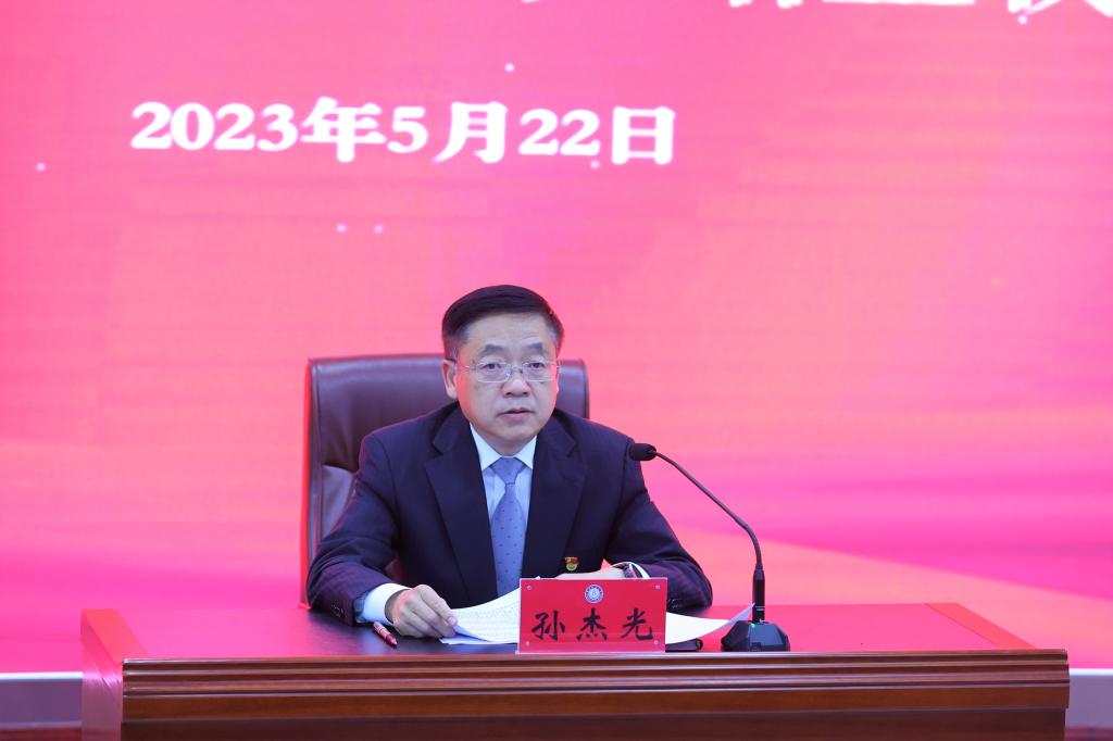 本网讯(党委宣传部 供稿)5月22日,学校举行学习贯彻习近平新时代中国特色社会主义思想主题教育读书班结业仪式暨党委理论学习中心组专题学习扩大会议,校党委书记、主题教育领导小组组长孙杰光主持会议并讲话。省委第21巡回指导组副组长徐大程同志、组员王阿莲同志,学校党委理论学习中心组成员、党委职能部门负责人、各单位党政负责人、教师党支部书记出席结业仪式。
