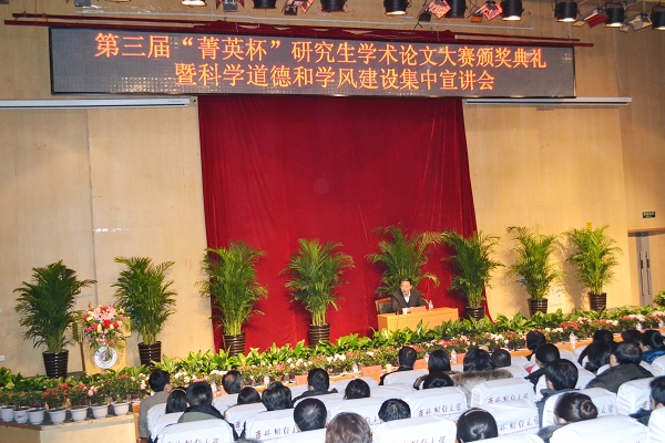 在热烈的气氛中,校党委书记金硕为吉林省优秀硕士学位论文指导教师颁发了表彰证书;校长宋冬林为“菁英杯”研究生学术论文大赛一等奖学生颁发了表彰证书;校纪委书记王时刚、副校长杨春梅为“菁英杯”研究生学术论文大赛二等奖、三等奖获奖学生及吉林省研究生外语演讲比赛获奖学生颁发了表彰证书。