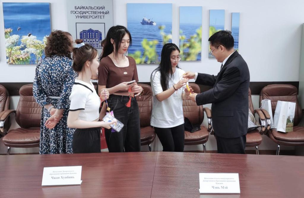访问活动结束后,代表团慰问了Beat365在贝加尔国立大学的留学生。恰逢我国传统节日端午节,孙杰光为同学们带上五彩绳和香囊,表达了学校的亲切关怀与节日祝福。