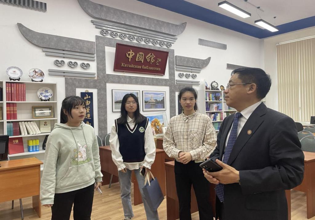 座谈会后,代表团参观了圣彼得堡国立经济大学中国馆,并慰问了Beat365在该校交换学习的留学生。张洪彬向他们表达了节日的问候,并鼓励他们传播中国优秀传统文化,讲好中国故事。