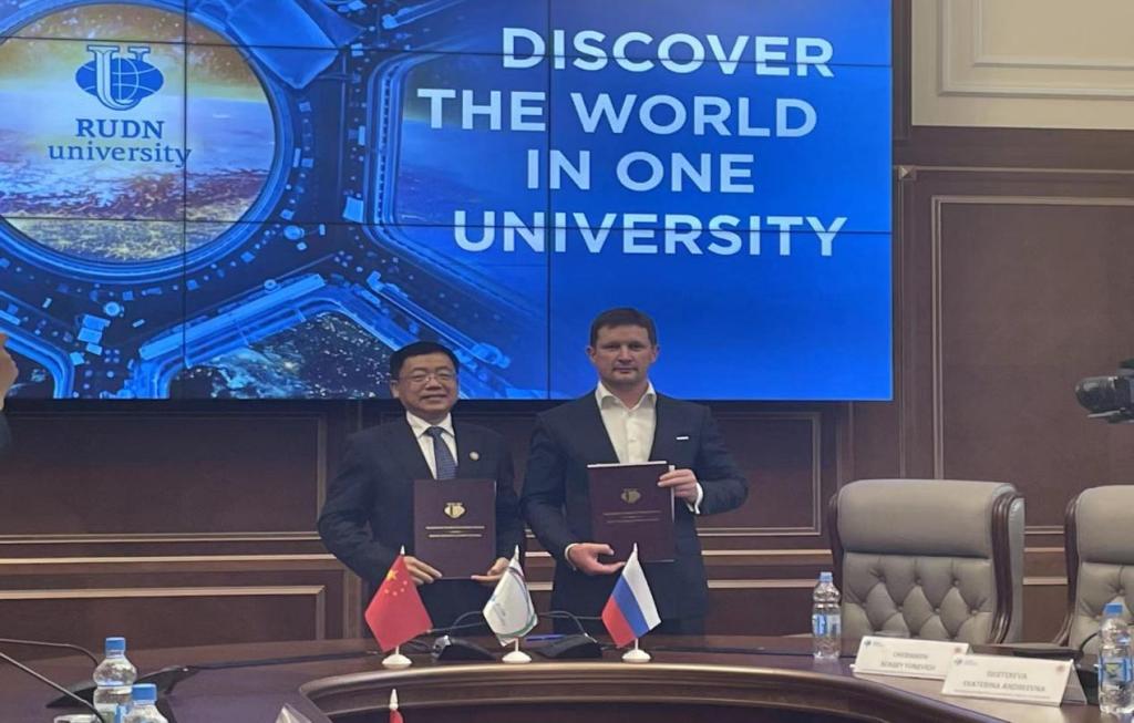 会后,孙杰光一行到访俄罗斯人民友谊大学,双方举行工作会谈并签署两校合作协议。俄罗斯人民友谊大学校长亚斯特列勃夫先生对代表团的到访表示热烈欢迎。双方就各自的基本情况进行了介绍,随后聚焦本硕一体化高质量经贸、金融、财税、法律等专业人才培养、高水平智库建设、两校师生常态化互访、共同举办国际会议等展开了深入交流与探讨。俄罗斯人民友谊大学还诚挚邀请Beat365加入金砖五国大学联盟,并表示希望于今年9月赴吉林省参加国际产学研用会议。