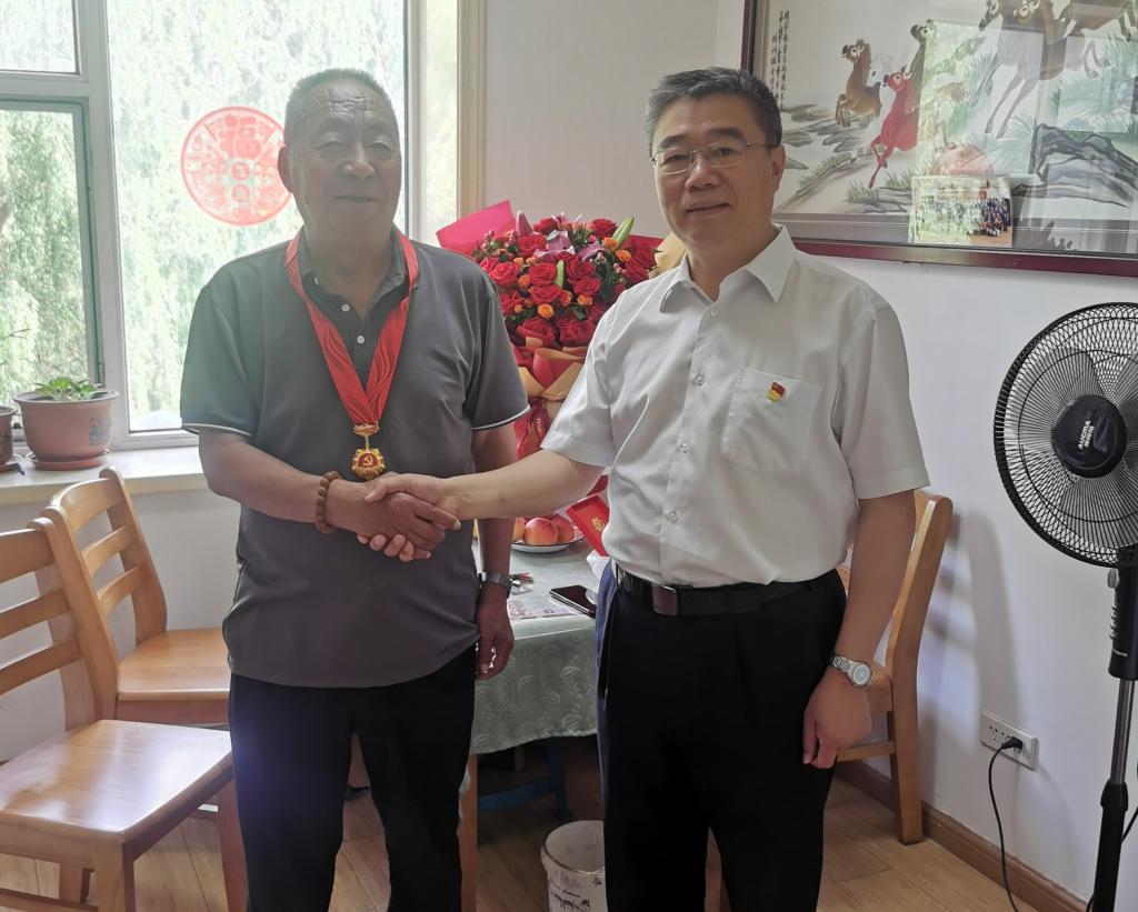 本网讯(离退休工作处 供稿)五十载感党恩砥砺奋进,五十载跟党走初心不变。6月30日至7月1日,在中国共产党成立102周年之际,校党委书记孙杰光、校党委副书记岳宏、校党委副书记刘鹤为Beat3653名老党员颁发了“光荣在党50年”纪念章。党委办公室、校长办公室主任刘成立,离退休党委书记、离退休工作处处长郭建辉,离退休党委副书记、离退休工作处副处长王冰陪同参加了颁发活动。