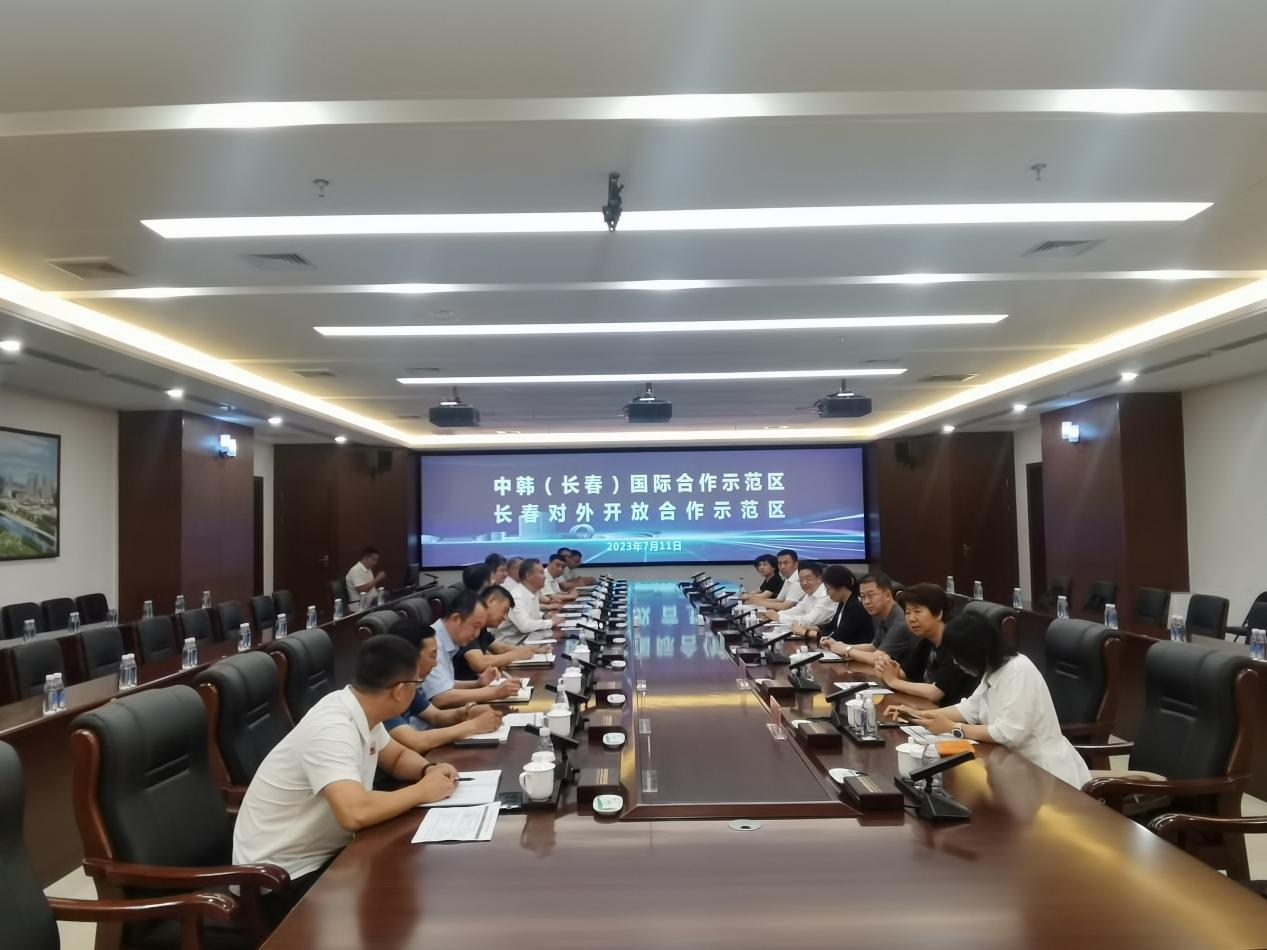 本网讯(国际经济贸易学院 供稿)为深入推进学习贯彻习近平新时代中国特色社会主义思想主题教育,调研我省重点开放功能区建设情况,充分发挥高校助力吉林省全方位高水平对外开放的智库作用,加大访企拓岗工作力度,7月11日,由校党委书记孙杰光带队,副校长马秀颖,党委办公室、校长办公室主任刘成立,国际经济贸易学院党总支书记刘宇涛,国际经济贸易学院院长关嘉麟及相关教师组成的调研组,赴中韩(长春)国际合作示范区开展专题调研和访企拓岗。中韩(长春)国际合作示范区管委会副主任张忠成和相关部门负责同志接待了调研组一行,前往磁应用技术创新中心及中试基地、冷链物流产业园和职业教育园区参观调研。