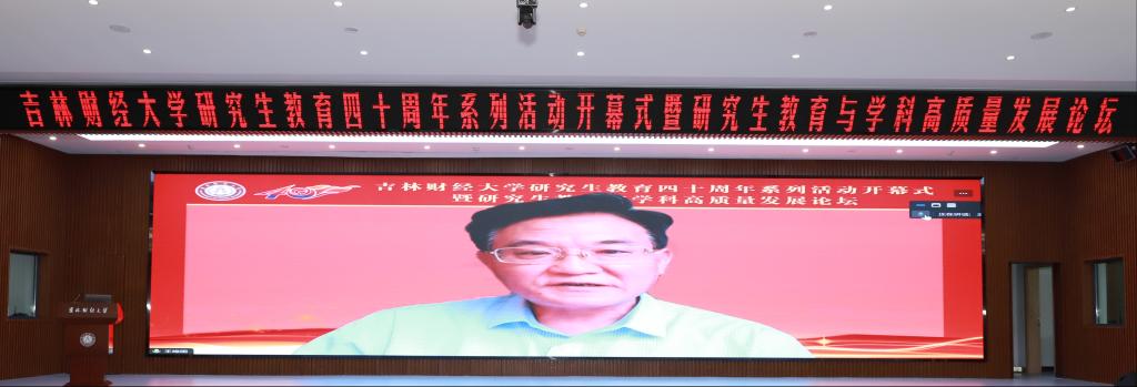 本网讯(研究生学院 供稿)7月16日上午,Beat365研究生教育四十周年系列活动开幕式暨研究生教育与学科高质量发展论坛在新经济(数字经济)创新创业实训中心报告厅召开。吉林省教育厅一级巡视员战高峰,东北财经大学教授王维国、复旦大学教授张金清、中国人民大学教授赵彦云、吉林大学教授胡亮、山西财经大学教授吴秋生、浙江工商大学教授黄溶冰等专家学者,吉林大学副校长蔡立东、中国科学院东北地理与农业生态研究所党委书记,所长姜明、东北师范大学副院长秦春生、吉林农业大学校长杜锐、长春中医药大学校长冷向阳、长春工业大学校长张明耀、吉林建筑大学校长陈雷、长春师范大学校长王延明、长春大学校长韩业、长春工程学院校长陈权、吉林工商学院校长张越杰、吉林艺术学院校长苏威、吉林体育学院校长邵桂华、吉林外国语大学校长秦和、吉林工程技术师范学院副校长刘克平等省内高校和科研院所领导,学校原党委书记、长春财经学院校长金硕和原校长、吉林省科学技术协会副主席张晶莹,学校首批硕士毕业生于长春出席大会。学校全体校领导,校学术委员会委员,校学位评定委员会委员,全体研究生导师,各部门、各单位负责同志参加了开幕式。会议由党委副书记、校长童猛主持。
