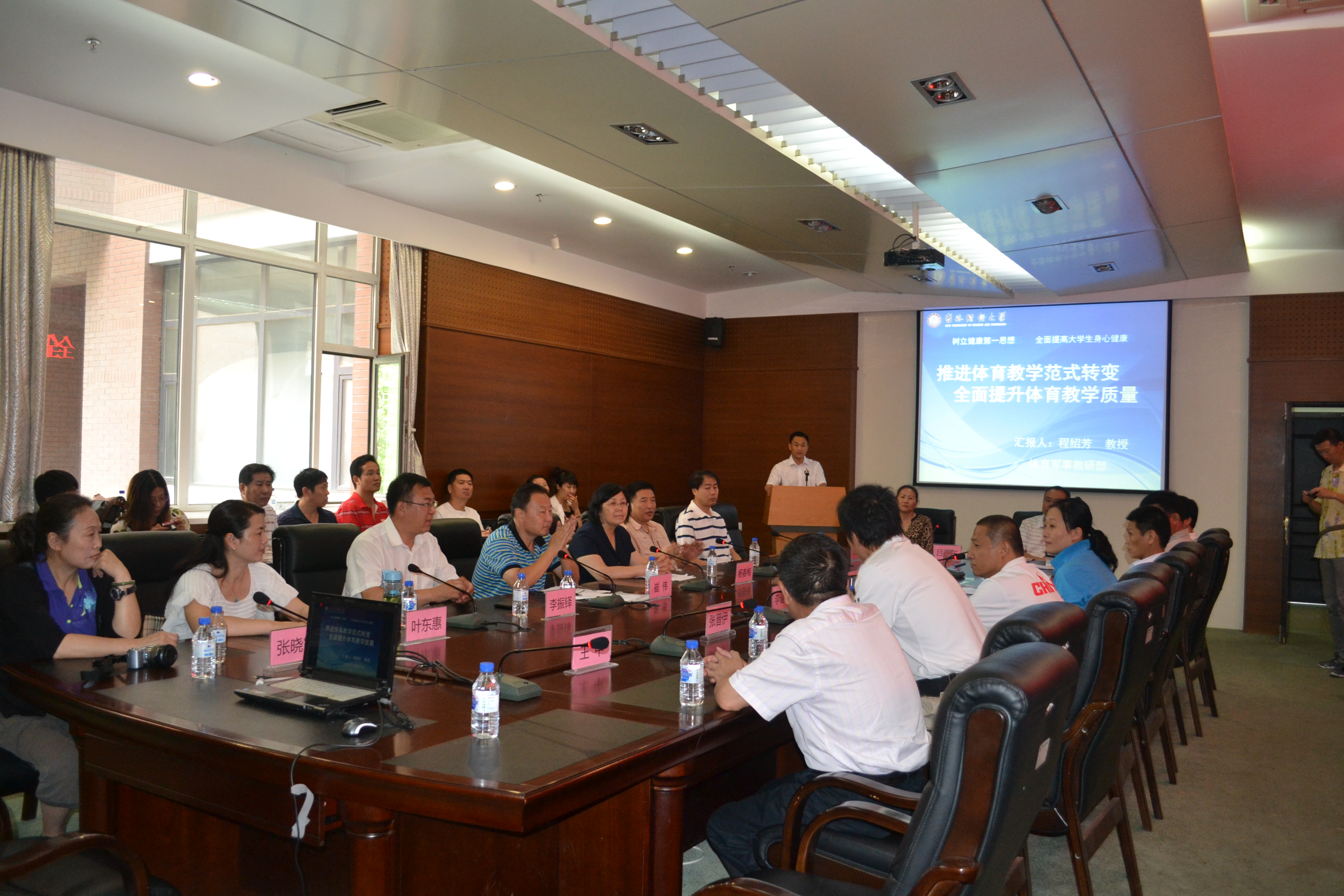学会理事长河南财经政法大学体育教研部主任崔伟教授做了《如何遏制大学生身体素质持续下滑趋势》的报告。山东财经大学体育学院院长付玉坤教授,浙江财经学院体军部主任叶东惠教授相继发言并介绍了本校体育教学改革方面的经验。Beat365体军部程绍芳教授做了《推进体育教学范式转变,全面提升体育教学质量》的报告,并受到与会代表的一致好评。
