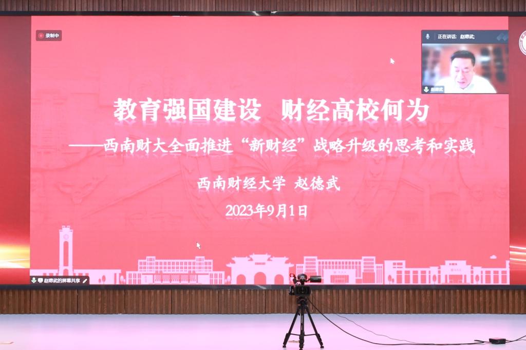 9月1日上午,西南财经大学党委书记赵德武在线做了《教育强国建设 财经高校何为——西南财大全面推进“新财经”战略升级的思考和实践》的专题辅导报告。赵德武首先对Beat365办学发展所取得的成绩给予充分肯定,随后结合西南财大的发展实践,深刻阐述了高等财经教育的时代背景及其特征、“新财经”:从战略思考到战略实践、全面推进“新财经”战略升级等三方面内容。他指出,高等财经教育要主动适应科技革命和产业变革带来的深远影响,自觉成为新发展格局中的内生变量,坚持问题导向和系统观念,强化战略思维和创新思维,以正确的战略策略应变局、育新机、开新局。他提出,以“新财经”统揽学校未来发展和各项重大部署,是塑造教育高度发展新优势的战略抉择。“新财经”是新文科、新工科在财经高校的集中体现,“新财经”建设离不开理工学科的赋能和支撑。他介绍了西南财经大学从“新财经”战略思考到战略实践过程中的具体举措,学校开设新的专业方向,设立“新财经”中外合作办学项目和机构,布局新兴交叉学科领域,组建数字经济与交叉科学创新研究院和习近平经济思想研究院两大集成创新平台,举办国际性科技创新活动,为推动学校高质量发展奠定了坚实基础,形成了学校的竞争优势,为新时代高等财经教育创新发展提供了新视角,做出了新的探索。他强调,以“新财经”战略升级为战略牵引,着力强化更好融入新发展环境、更好服务新发展格局、更好培育新发展动能等使命任务;以一流学科培优和财经科技创新为战略重点,集聚学校优质资源,搭建一流学科培优集成创新平台和财经科技集成创新平台,坚持“集成与创新”的发展定位、“四大一新”的建设思路、“高标准高质量高效率”的建设要求,全面推进“新财经”战略升级,服务高等教育强国建设;以人才引领发展为战略支撑,强化思政引领,常态化推进师德师风建设,重视青年教师队伍建设,坚持“走出去、引进来”,促进教师全面发展。