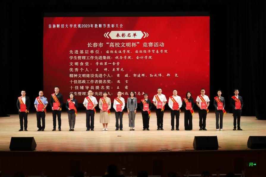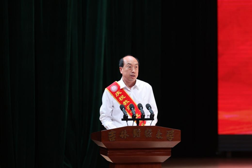 孙杰光代表学校党委和童猛校长向全体教师致以节日的祝福,向辛勤工作在学校教学、科研、管理和服务一线的全体教职工表示衷心的感谢,向所有受表彰的集体和个人表示热烈的祝贺。充分肯定了广大教师对学校教育事业高质量发展作出的突出贡献,分享了与广大教职员工携手并肩共同推进学校高质量发展的感受。他指出,财大的教育事业之所以77年红色传承、生生不息,最重要的一个原因,就是一代又一代的财大人,一棒又一棒的付出和努力,兢兢业业,默默耕耘,无私奉献,才使得学校的人才培养、科学研究、社会服务、文化传承创新和国际交流合作、思政工作、党的建设等各领域各方面,有了长足的进步与发展,取得了丰硕的成果。
