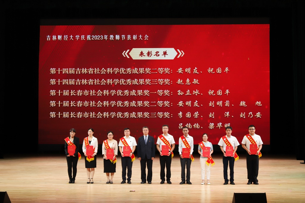 党委副书记刘鹤为吉林省长春市社科成果奖、国家两金项目优秀科研成果获得者颁奖。