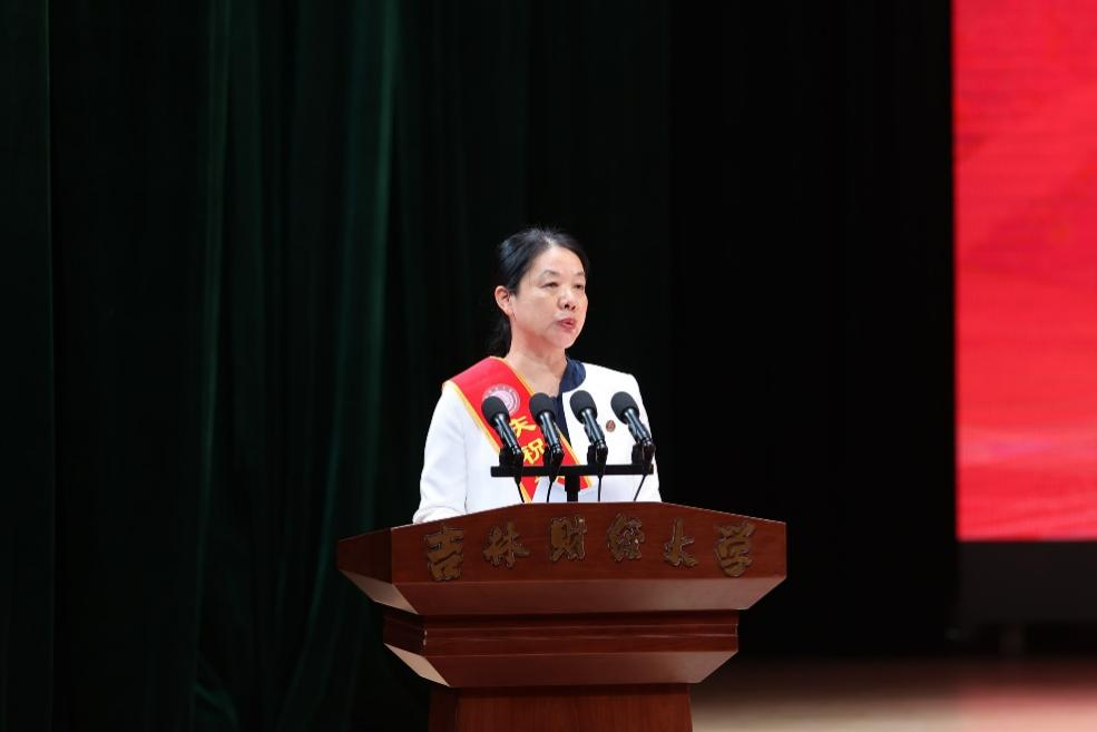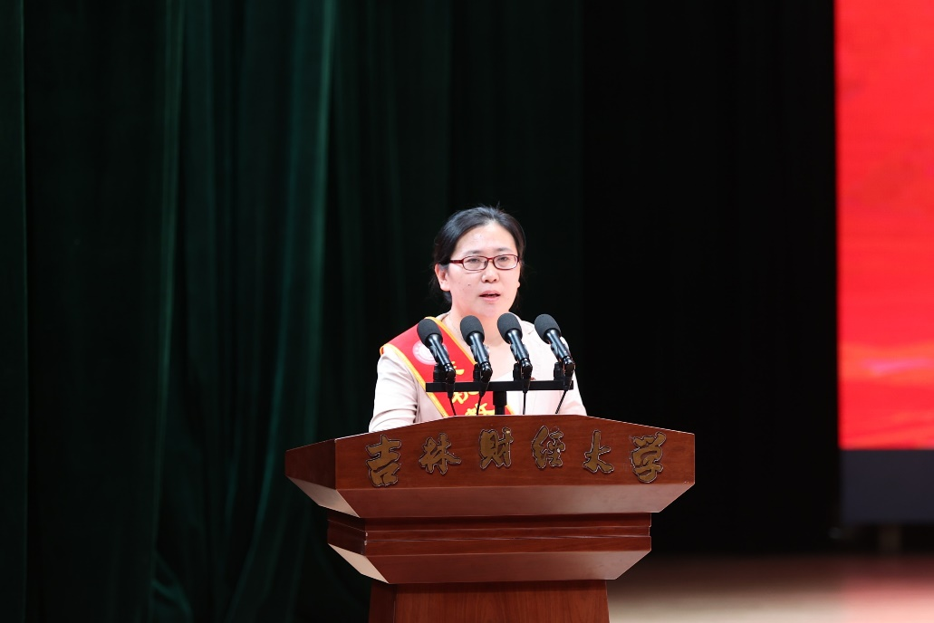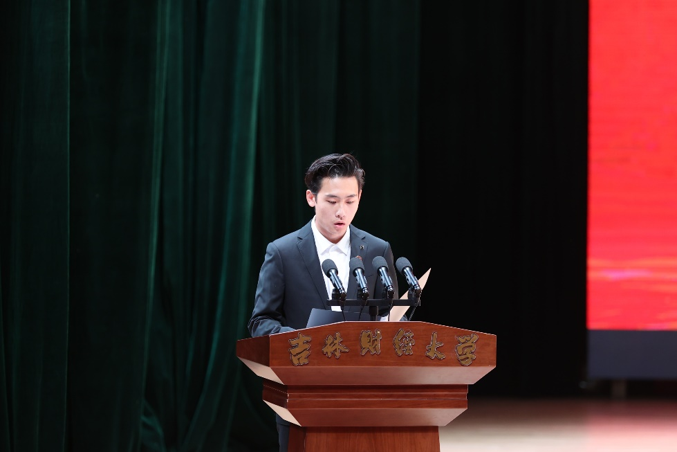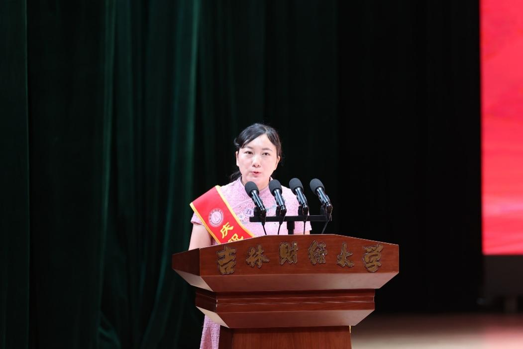 吉林省优秀大学生、校十佳大学生、金融学院赵恩泽同学为老师们送上祝福,每一位吉财学子对老师最好的报答和感谢,就是锤炼品格,掌握知识,为祖国为社会贡献自己的力量。