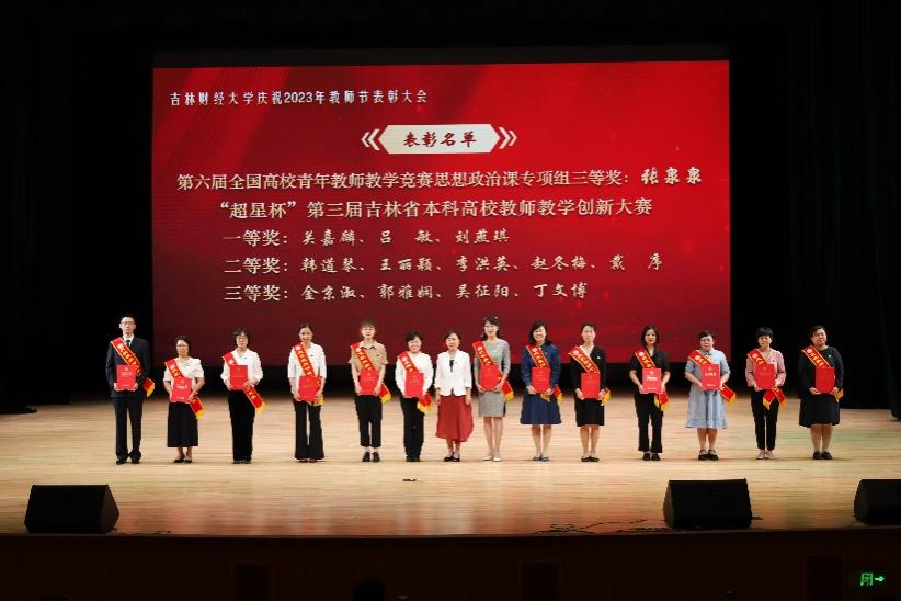 副校长王菁华为第六届全国高校青年教师教学竞赛、“超星杯”第三届吉林省本科高校教师教学创新大赛获奖教师颁奖。