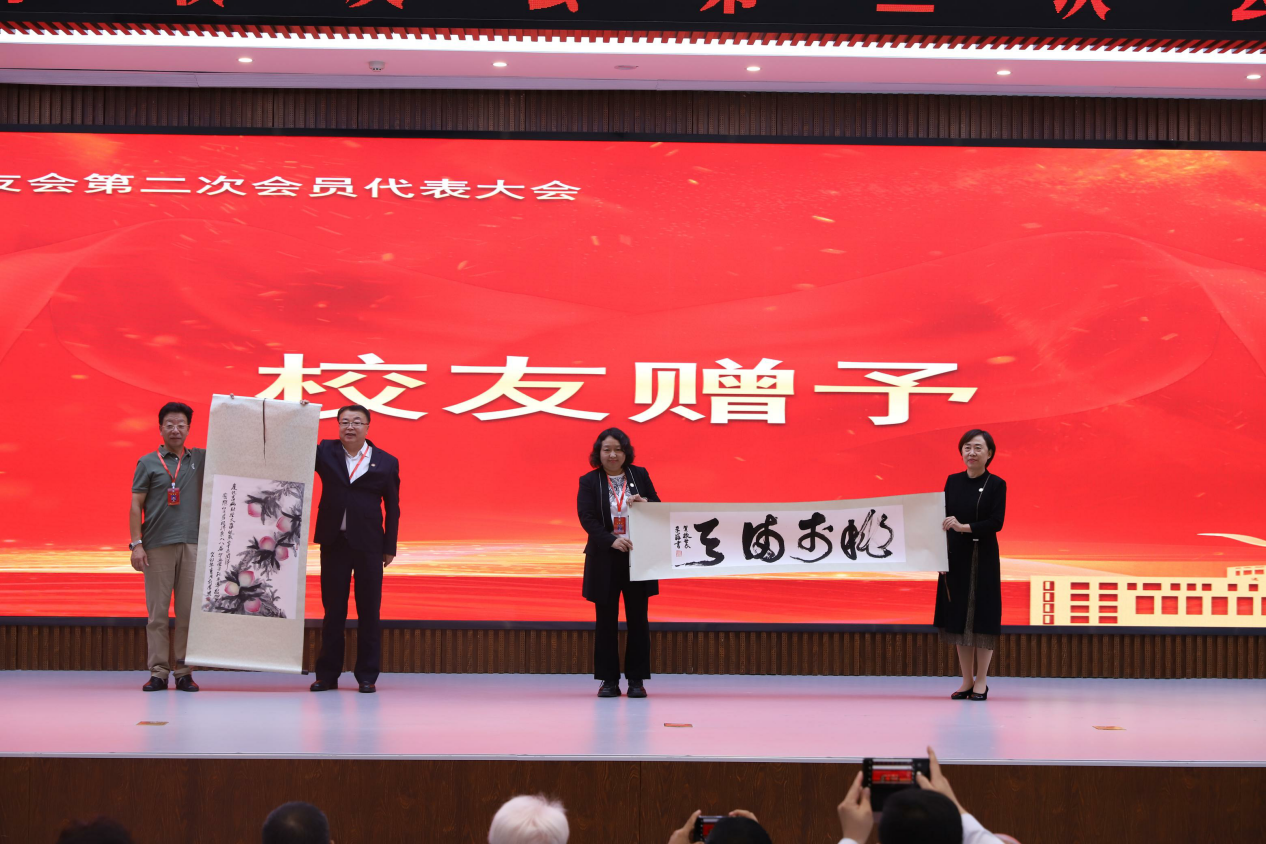 选举结束后,优秀校友代表长春校友会会长安洪滨、深圳校友会副会长兼秘书长王延辉依次作了交流发言。两位校友满怀深情,充分肯定了学校为本次会议所做的筹备工作,并代表各界校友向本次会员代表大会的成功举办表示热烈的祝贺!他们分别介绍了长春校友会、深圳校友会的特色工作。他们表示,今天的Beat365中文官方网站办学特色鲜明、办学成效显著,广大校友备受鼓舞。今后各地、各专业校友会将组织广大校友通过多种方式支持学校的人才培养、科学研究和学科专业建设等,祝福母校越办越好!随后,会场举行了校友赠送纪念品活动。为祝贺本次校友会员代表大会成功召开,财政87级唐静校友捐赠了1936年出版的、俄文版《资本论》珍藏本;大连校友会赠送了精美的书法作品和绘画作品。