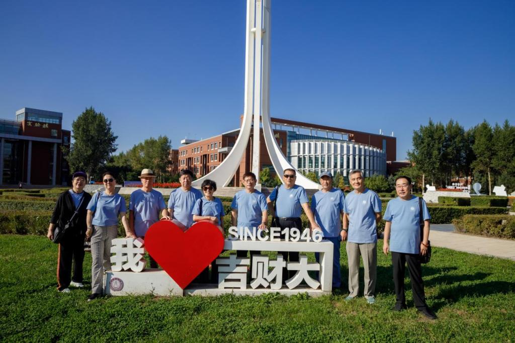 本网讯(校友工作办公室 供稿)四十载时光荏苒,再聚首风采依旧。9月6日,金融7912班校友返回母校,相聚吉财,开展40周年聚会活动,共忆火热青春岁月,畅叙师友同窗情谊。校党委书记孙杰光、党委副书记刘鹤盛情欢迎校友们返校。他们陪同返校校友参观了校史馆。走进校史馆,校友们细细端详着每一件校史藏品,观看学校的历史变迁,不禁感叹韶华飞逝,也缅怀那个曾经年少的自己。随后学校领导、老师陪同校友参观校园。重新回到阔别40年的母校,见到曾经的同窗好友,每位校友都难掩激动,一幕幕昔日画面再现心头。他们分享着毕业后的酸甜苦辣,曾经在校园生活过的点点滴滴涌上心头。在教学楼前,他们整理衣冠,用一张照片留下了对过往的追忆,定格了对今日母校的期许与赞叹。