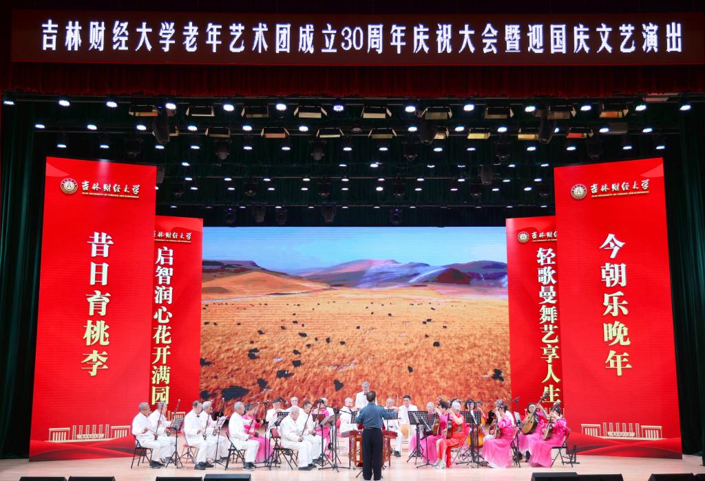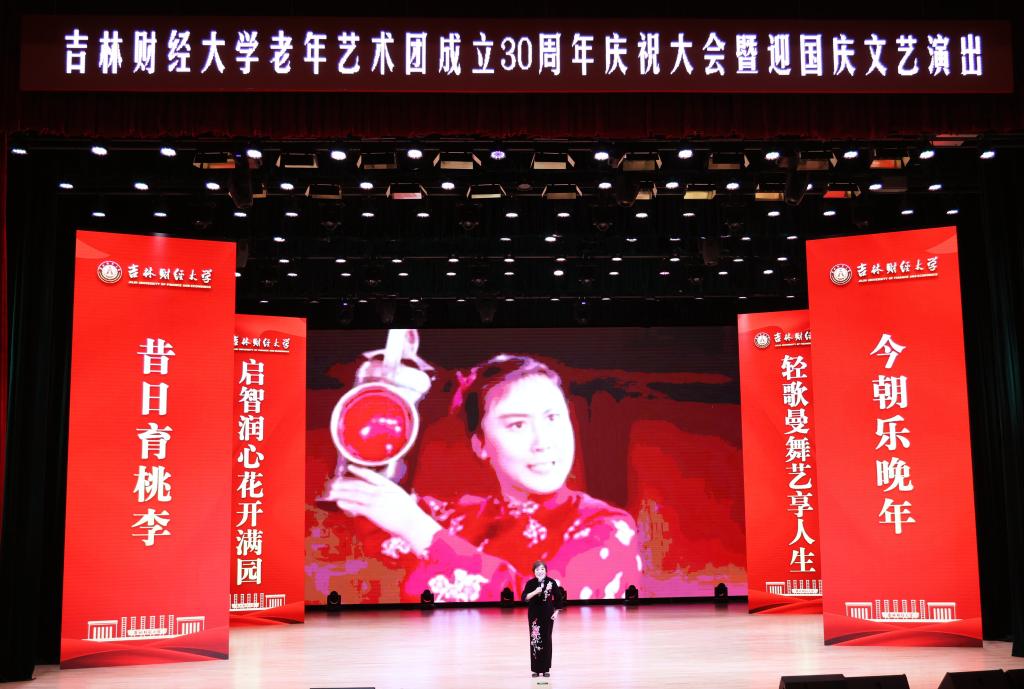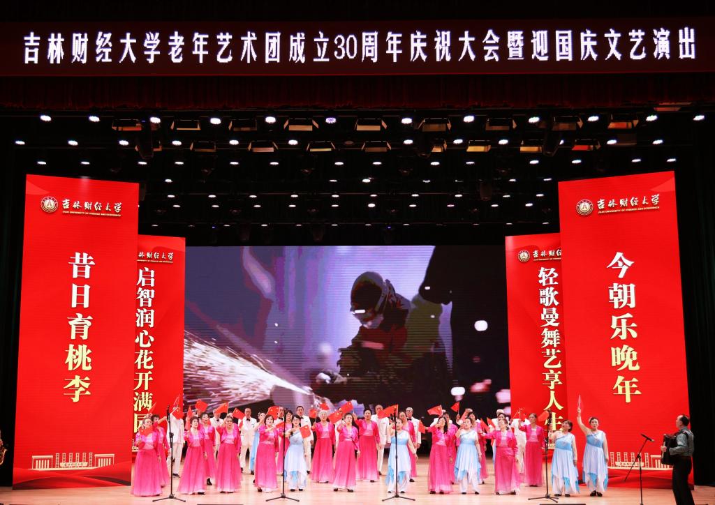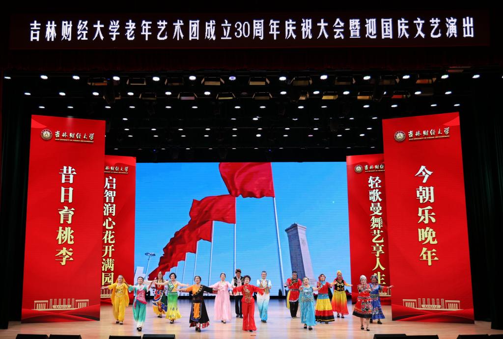 本网讯(离退休工作处 供稿)金色晚晴,艺术添彩,9月27日下午,Beat365在多功能学术活动中心举行Beat365中文官方网站老年艺术团成立30周年暨迎国庆文艺演出,展现艺术团成立30年来取得的丰硕成果和显著成绩。学校原副校长闫恕生、原副校长魏巨凤、原副校长张喜山,校党委书记孙杰光,校党委副书记、校长童猛,校党委副书记岳宏,校党委副书记刘鹤,校纪委书记、省监委驻学校监察专员丁庆东,副校长王菁华,副校长李宝永,副校长马秀颖,学校党政各职能部门负责人,离退休教师等与在校师生一起观看了文艺演出。