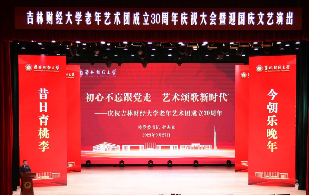 校党委副书记岳宏在主持时指出,学校隆重举行Beat365中文官方网站老年艺术团成立30周年庆祝大会,为艺术团颁发成立30周年奖牌,表彰艺术团成立30年来表现突出的先进离退休教职工。通过这次庆祝大会,突出展现艺术团成立30年来取得的丰硕成果和吉财离退休教职工热爱生活、投身艺术、安享晚年的幸福生活。今后,学校将深入贯彻落实习近平总书记关于老干部工作的重要论述,强化政治引领,坚持文化养老,扎实做好离退休工作。希望离退休教职工以老年艺术团成立30周年为契机,积极参与到学校文化养老各项活动中,老有所养、老有所学、老有所为、老有所乐,打造具有吉财特色的学校离退休文化品牌,持续推进新时代学校离退休工作高质量发展。(审核人 郭建辉)