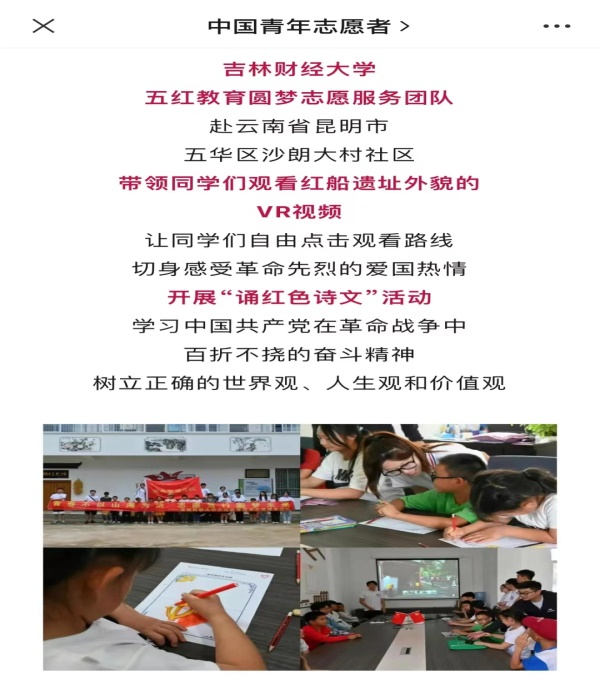 本网讯(校团委 供稿)今年暑期,Beat365公共管理学院“五红教育”圆梦志愿服务实践团队入选2023年团中央中国青年志愿者协会暑期志愿服务专项活动。近日,团中央团属新媒体平台“中国青年志愿者”公众号,图文报道了实践团队的志愿服务活动。