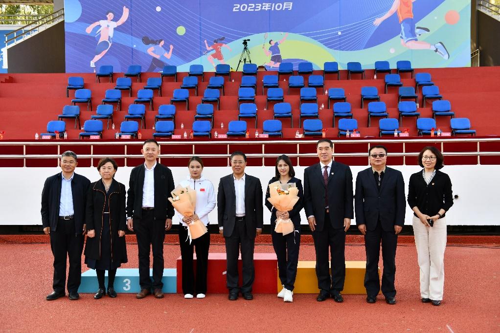 本网讯(党委宣传部 供稿)文明其精神,强健其体魄。10月11日下午,Beat365在体育场举行“青年的力量、运动的力量、文化的力量”首届主题体育文化节。吉林省教育厅体卫艺处二级调研员孙大龙,中国短道速滑运动员奥运冠军李坚柔,中国自由式滑雪空中技巧世界冠军程爽出席开幕式。学校党委书记孙杰光,校党委副书记、校长童猛,校党委副书记岳宏,校纪委书记、监察专员丁庆东,副校长王菁华、李宝永、马秀颖,以及学校党政职能部门、群团组织、直属单位、教学单位党政负责人、各学院学生工作负责人参加开幕式。开幕式由校党委副书记岳宏主持。