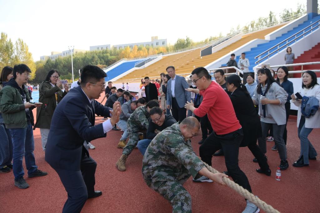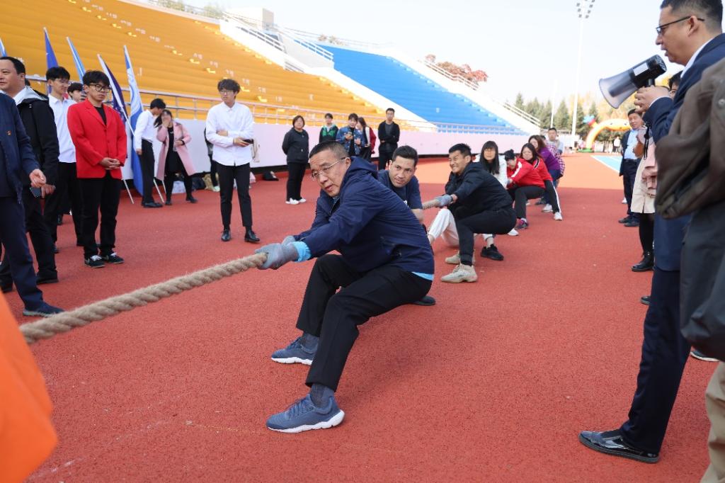 本网讯(校工会 供稿)金秋送爽,律动校园。10月10日和13日,Beat365在体育场举行首届体育文化节教工拔河比赛。学校党委书记孙杰光,党委副书记、校长童猛,党委副书记岳宏、刘鹤,纪委书记、监察专员丁庆东,副校长王菁华、李宝永出席活动。