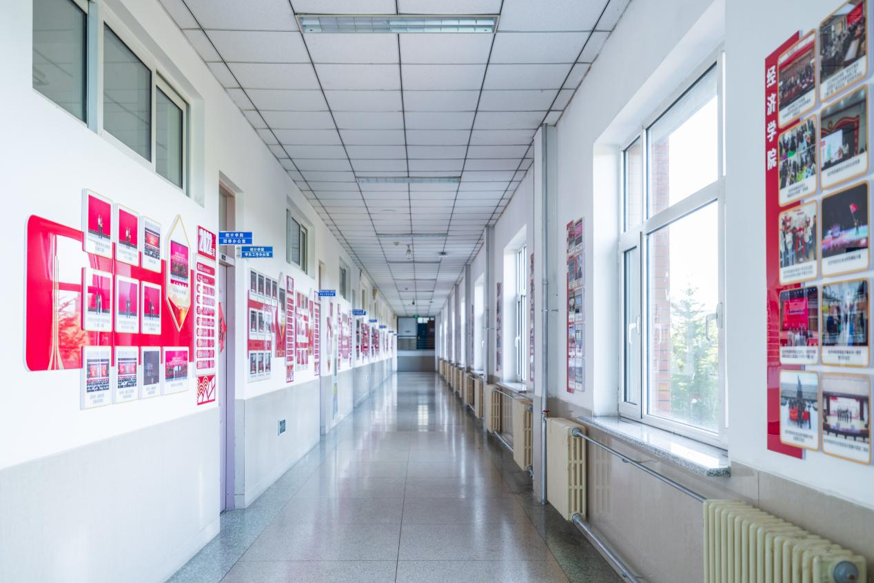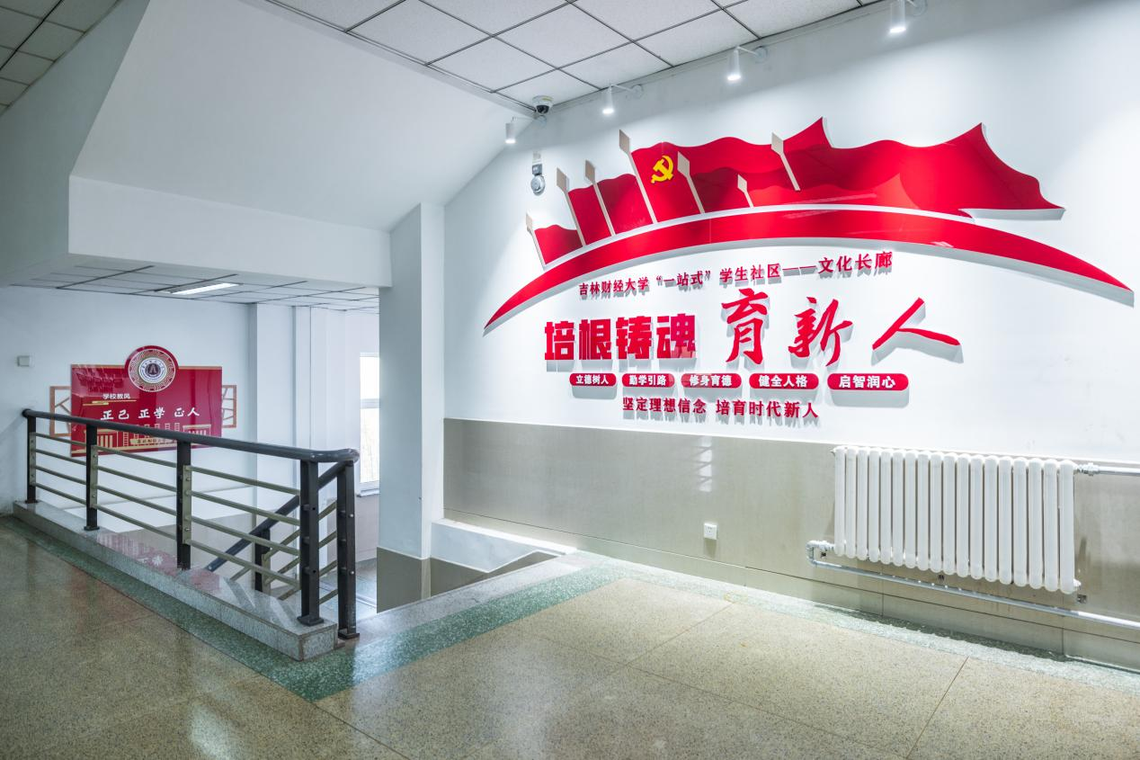 二是打造四条文化主题长廊。第一教学楼A区一层的“书香文化长廊”,同时也是“一站式”学生社区的“书香吉财·共享空间”,既设有展示“吉财书单”各类推荐书籍的图书架,也设置了供学生学习、阅读、讨论、路演的专门共享空间,可供学生开展一些小型学习交流活动。二层文化长廊的主题为“党旗领航风帆劲”,主题设计核心是彰显Beat365“坚持党建引领、践行立德树人”的育人理念,全面展示党的历次全国代表大会光辉历程,以及Beat365“党旗领航”工程——辅导员成长计划等相关内容,充分展现Beat365为党育人、为国育才的坚定信心。三层文化长廊的主题是“培根铸魂育新人”,主题设计核心是集中展示Beat365“坚定理想信念、培育时代新人”的生动实践和育人成果,集中展示基层学院党建引领、思政教育、就业创业、文化建设、社会实践等各项工作,以及Beat365历届“十佳”大学生风采,教育引导青年学生见贤思齐、共同成长。四层文化长廊的主题是“以文化人承师魂”,主题设计核心是鲜明表达Beat365教工“传承优秀文化、争当红烛先锋”的师德崇尚和职业追求,“学习用典”宣传墙精心摘选了习近平总书记重要讲话中所引用的古代典籍、经典名句,并附以典故的原文出处和时代解读,又从全校师生和毕业校友当中征集以“学习用典”为内容的书画作品统一装裱展示,希望通过这些书画艺术载体的展示,使中华优秀传统文化在Beat365师生中焕发新的生命活力,切实增强文化自信,涵养浩然正气,坚定理想信念,积蓄精神力量,让这些饱含着智慧和力量的名篇佳句常在眼前、常在耳畔。