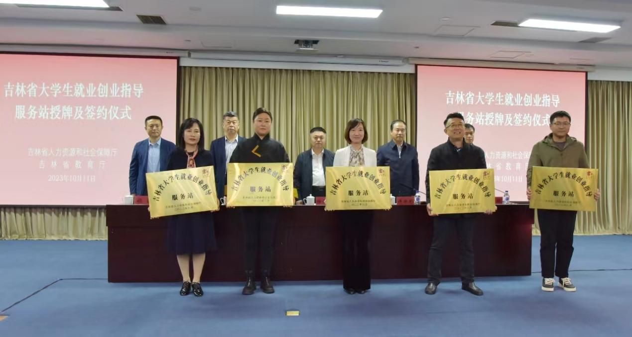 本网讯(招生就业处 供稿)为落实落细高校毕业生就业创业相关政策,加大高校毕业生等青年留吉,全力促进高校毕业生高质量充分就业,近日,吉林省大学生就业创业指导服务站授牌及签约仪式在吉林省人力资源和社会保障厅举行。吉林省教育厅一级巡视员许世彬,吉林省人社厅党组成员、副厅长杨如军出席会议并讲话,省人社厅、省教育厅、省人才交流中心、各服务站单位、部分省级大学生创业园的相关部门负责人参加会议。