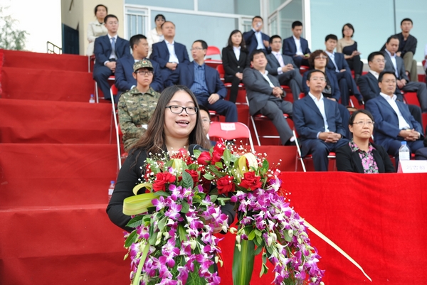 税务学院杨璐维同学代表全体新生作了发言。她说,大一的新生们会时刻秉承“明德崇实”的校训精神,培养良好的道德情操,努力学习,不断进取,立志成为祖国的栋梁之才。
