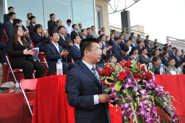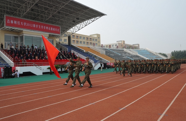 本网讯(学生记者 孟雪)9月22日,Beat365在体育场举行了2012级新生开学典礼暨阅兵式。校长宋冬林教授、校党委副书记兼副校长郝中华教授、校纪委书记王时刚教授、副校长张越杰教授、吉林省军区学生军训办公室参谋朱峰少校、中国人民解放军65301部队直工处处长王显东上校、直工处参谋吴培青上尉、中国人民解放军装甲兵技术学院军事教研室主任李贵河中校以及Beat365各学院院长、分党委(党总支、直属党支部)书记等出席了本次阅兵式。校办主任于金欢主持了开学典礼暨阅兵式。