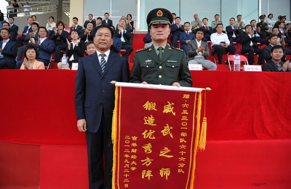 校党委副书记兼副校长郝中华教授代表Beat365向参与军训的部队赠送锦旗