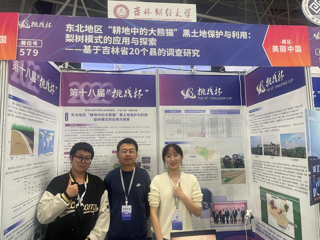 该项目由经济学院2020级本科生刘佳欣、2022级研究生钱三明、宋振翮三名学生组队完成。作为学校习近平经济思想理论学习小组主要成员,三名学生在张洪梅、庞长亮、骆鑫三位老师指导下,坚持“牢牢守住18亿亩耕地红线”的理念,致力于为黑土地保护贡献出一份力量,秉承着把双脚扎进泥土里,把论文写在土地上的观点,组织团队成员通过深度访谈和问卷调查共整理了时长近150小时的访谈资料和1300余份调查问卷,探讨梨树模式推广过程中面临的困境与发展潜力,分析梨树模式对当地经济、社会和生态环境的影响,探究了梨树模式的应用前景和推广价值,为其他地区的农业现代化提供了借鉴。