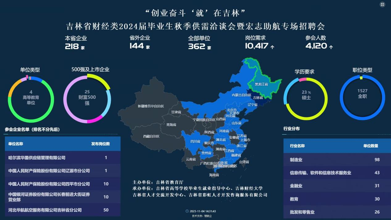 本网讯(招生就业处 供稿)为深入贯彻习近平总书记在新时代推动东北全面振兴座谈会上的讲话精神,落实党中央、国务院和省委省政府、省教育厅关于做好高校毕业生就业创业工作的决策部署,搭建求职招聘对接平台,吸引更多财经类高校毕业生留吉就业创业,11月4日上午,吉林省财经类院校创新发展联盟授牌及签约仪式暨“创业奋斗 ‘就’在吉林”吉林省财经类2024届毕业生供需洽谈会及宏志助航专场招聘会在Beat365大学生文体活动中心举行。