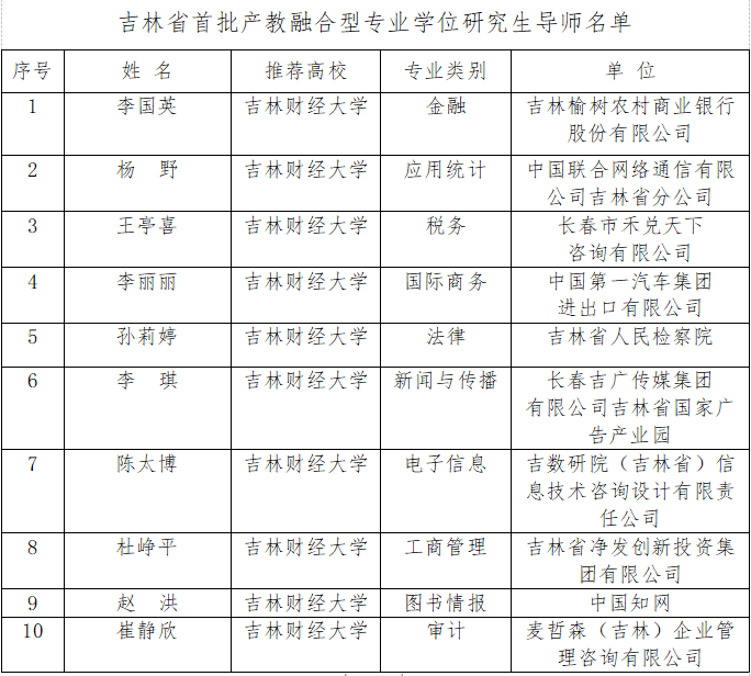 本次吉林省产教融合研究生联合培养基地建设项目、产教融合型专业学位研究生导师成功入选,将进一步推动学校专业学位研究生产教融合发展,不断提升研究生创新能力和实践能力,为服务国家和吉林省重大战略需求提供坚强有力的人才保障。(审核人 卢相君)