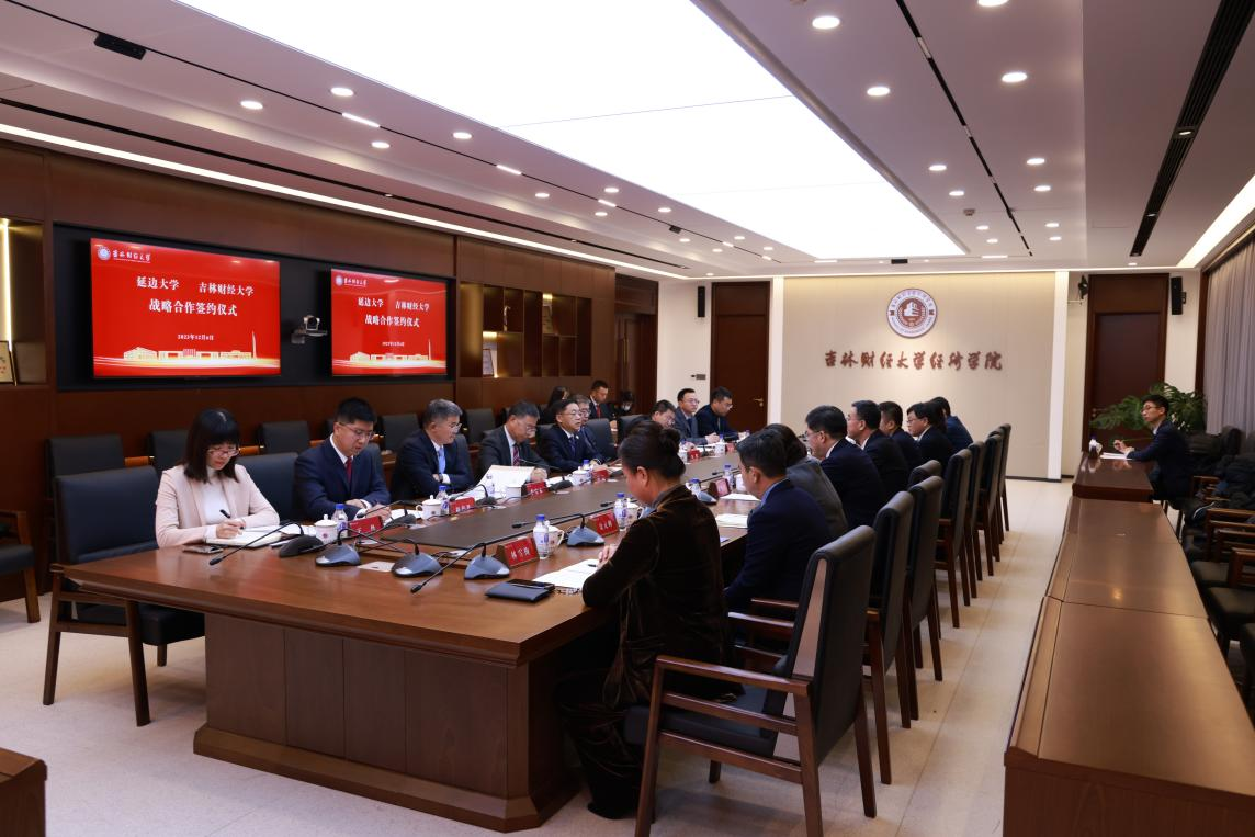 冯涛在讲话中指出,习近平总书记在主持召开新时代推动东北全面振兴座谈会上发表的重要讲话,赋予了高校新的历史使命与责任,对高校学科建设、人才培养、科学研究提出了更高的要求。吉财和延大办学各具特色、学科优势各有专长,交流基础良好、合作前景广阔。他表示,本次签约是两校在新阶段开展高质量合作的新起点,双方将进一步围绕人才培养、科学研究、队伍建设等方面,加强多层次的信息沟通,开展全方位的深入交流,细化更具体的务实举措,不断拓展合作领域,拓宽合作内容,巩固合作成果。延边大学将携手吉财并肩奋斗、相互成就、守望相助,共同为助推吉林全面振兴率先实现新突破做出新的更大贡献。