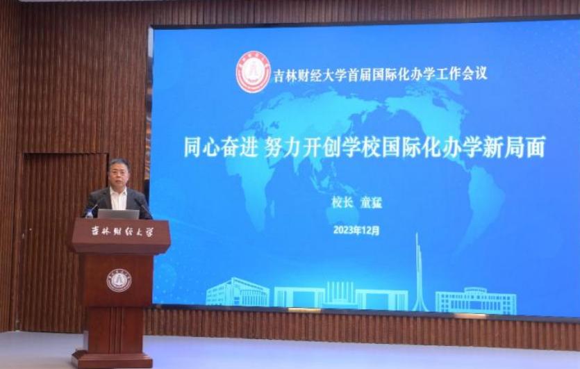童猛以《同心奋进 努力开创学校国际化工作新局面》为题,进行了大会主题报告。他首先强调了召开学校首次国际化工作会议对我们准确把握新形势下国际交流与合作的任务与使命、高质量实施学校“十四五”规划、有效推动学校内涵发展以及加快推进学校国际化办学进程具有十分重要的意义,回顾了学校自开展国际化办学以来取得的主要成绩,并明确了学校国际化办学的工作方向。他指出,教育国际化是我国高等教育主动适应全球化的重要举措,也是当前学校推进一流财经大学建设的重要内容,国际交流合作工作是一项系统工程,涉及每一个部门、每一个学院(部)和广大教职工。他希望全体师生要深刻领会国际化对学校发展的重大意义,希望大家进一步解放思想、凝心聚力、改革创新,更积极、更主动、更自觉地参与到学校国际化办学进程中。学校将加强党的领导与战略引领,坚持体系作战,构建国际化工作新格局,实现增量与重点双突破。