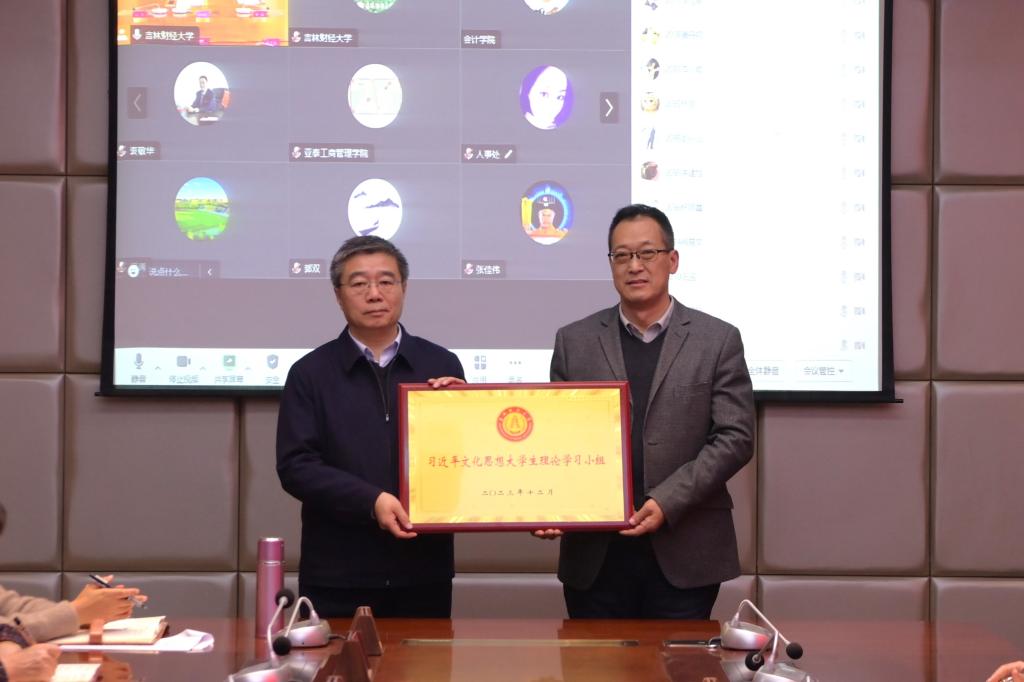 会议首先举行了Beat365中文官方网站习近平文化思想大学生理论学习小组成立仪式,学校党委副书记刘鹤为习近平文化思想大学生理论学习小组授牌。孙杰光指出,习近平文化思想大学生理论学习小组是继学校习近平经济思想理论学习小组等5个理论学习小组成立后的第6支理论学习小组,自此,学校实现了大学生理论学习小组全覆盖。理论学习小组成立以来,陆续开展多项活动,获得了多项国家及省级荣誉,取得初步成效。希望各理论学习大小组不断推进理论与实践的双层探索,为推进学校高质量发展贡献青年力量。