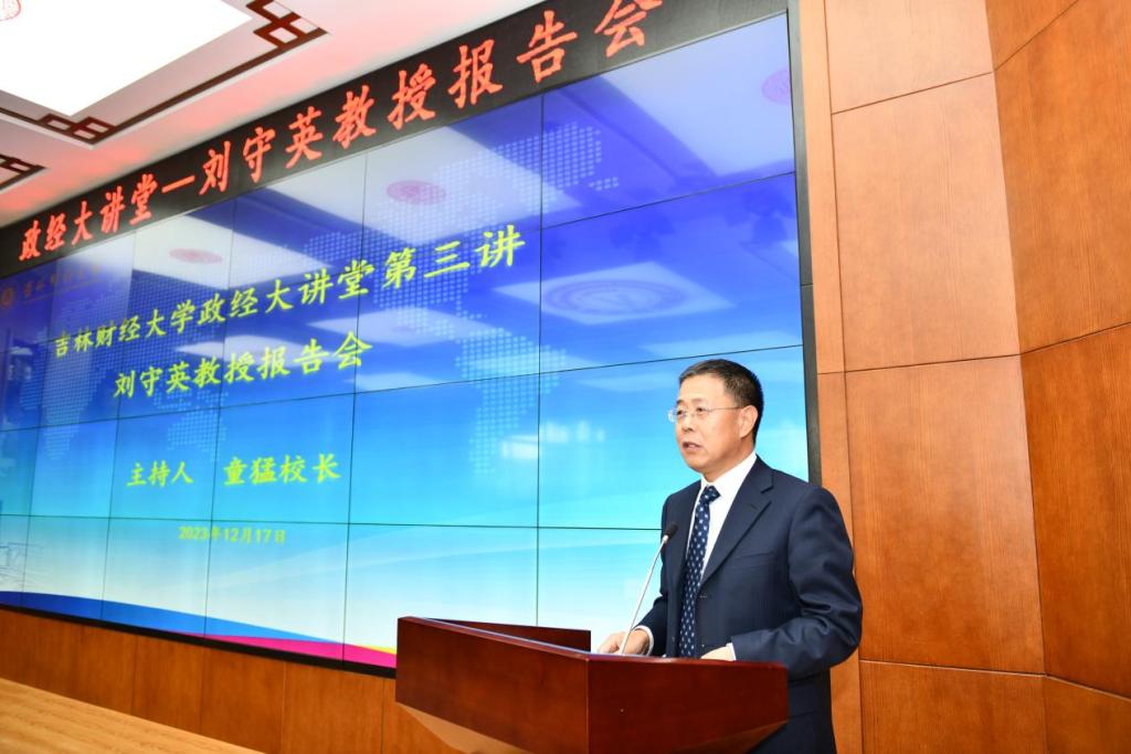 本网讯(金融学院 供稿)为深入学习贯彻习近平经济思想和习近平总书记关于东北振兴的重要论述以及视察吉林的重要讲话精神,加强对新时代中国特色社会主义政治经济学的学习、研究和运用,12月17日,学校举行Beat365中文官方网站政经大讲堂第三讲,由中国人民大学经济学院党委书记、院长,博士生导师、教育部长江学者特聘教授刘守英作《中国发展模式》的学术报告。报告会由校长童猛主持,金融学院教师及学生代表参加了报告会。