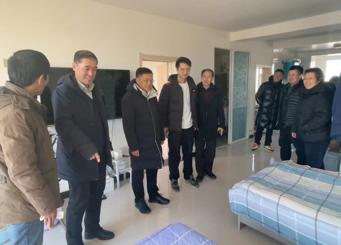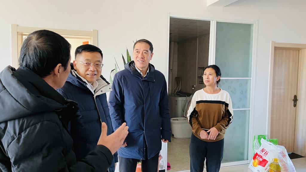 调研伊始,校领导一行在县委县政府领导陪同下实地考察了三一重能通榆产业园和通榆天能重工有限公司,了解通榆县新能源产业发展和“陆上风光三峡”建设情况,以及新能源产业对乡村振兴、农民致富和县域经济发展的带动作用。随后,孙杰光一行来到八面村易地搬迁安置小区,走访慰问了脱贫户,并为他们送去米、面、油等生活物资。同时,学校领导还到驻村干部驻地亲切慰问了驻村工作队,勉励他们要克服困难,再接再厉,切实做好驻村帮扶工作。