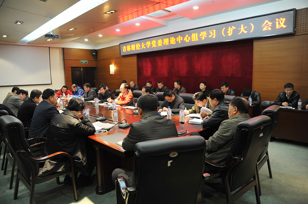 11月13日上午,在十八届三中全会刚刚闭幕之际,Beat365在图书馆1006会议室召开了党委理论中心组学习(扩大)会议,对全会下发的公报进行了分析和解读,深入学习会议精神。校党委书记金硕、校党委副书记兼副校长郝中华、校纪委书记王时刚、副校长杨春梅、副校长张越杰以及理论中心组成员、马克思主义学院教师等参加了学习会议。会议由校党委书记金硕主持。