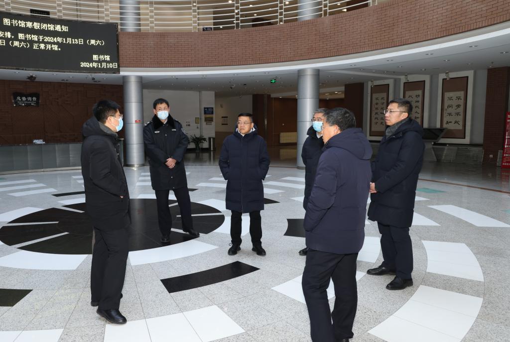 本网讯(党委宣传部 供稿)为全力做好寒假期间安全工作,有效防范化解校园可能存在的各类风险隐患,为学生和教职工提供一个平安和谐的假期环境,1月12日下午,校党委书记孙杰光,校党委副书记、校长童猛,校党委副书记刘鹤,副校长祝国平等学校领导深入校园检查假前安全工作,学校办公室、党委宣传部、安全保卫处、计划财务处、教务处、学生工作处、资产管理处、后勤保障处、信息管理中心、实验实训中心、研究生学院、图书馆、校医院等相关职能部门人员参加走访。