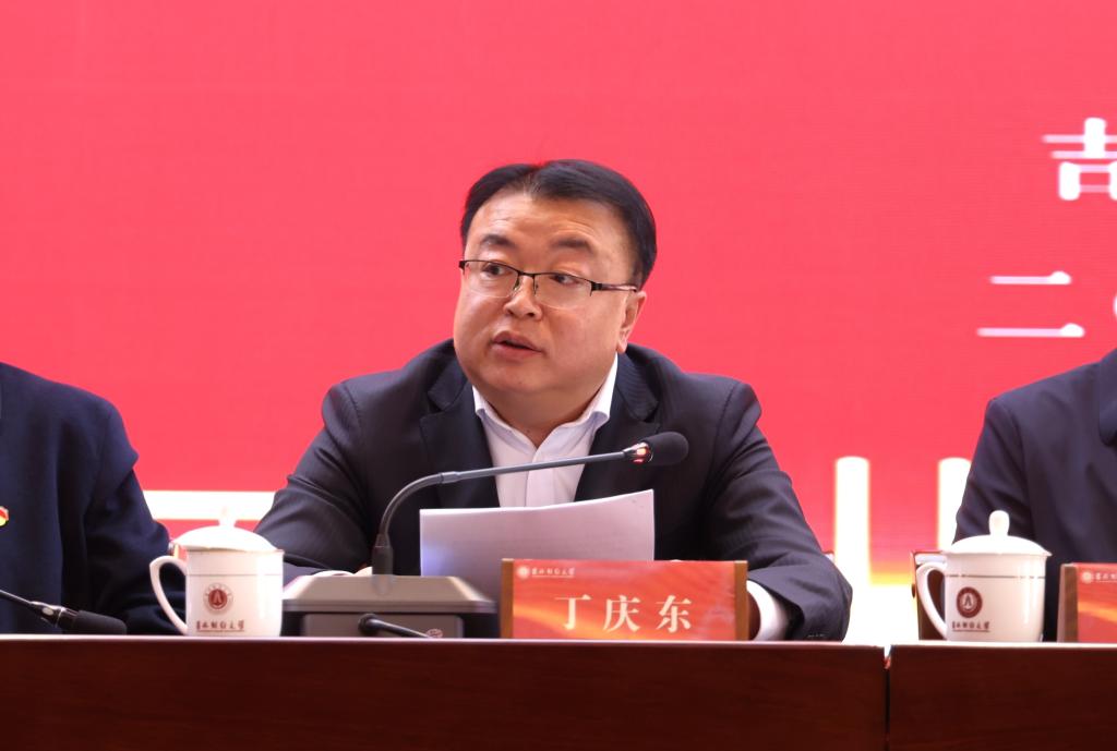校纪委书记、监察专员丁庆东作了《深入学习贯彻习近平总书记关于党的自我革命的重要思想,以高质量纪检监察工作推动学校政治生态持续向好》的工作报告。他首先对学校2023年纪检监察工作进行了回顾总结:2023年,学校纪检监察机构以学习贯彻党的二十大精神、习近平总书记系列重要讲话精神为重点,聚焦学校党委全面从严治党和党风廉政建设工作要求,深刻领悟“两个确立”的决定性意义,增强“四个意识”、坚定“四个自信”、做到“两个维护”,扎实开展学习贯彻习近平新时代中国特色社会主义思想主题教育,认真组织学校纪检监察干部队伍教育整顿工作,不断强化监督职责,坚持把纪律挺在前面,践行监督执纪“四种形态”,着力解决师生员工身边的不正之风和违规违纪问题,营造风清气正的校园政治生态和育人环境,推进四个常态化,做细做实日常监督,为学校各项事业高质量发展提供坚强保障。接下来,丁庆东对学校2024年纪检监察工作进行安排部署:一要巩固深化主题教育和教育整顿成果,用党的创新理论凝心铸魂;二要履行协助职责,推动全面从严治党向纵深发展;三要聚焦“国之大者”,进一步推进政治监督具体化、精准化、常态化;四要强化纪法学习宣传教育,推动形成遵规守纪的高度自觉;五要全力推进“三不腐”,强力推进腐败问题的系统治理;六要以更高标准、更严要求建强纪检监察干部队伍。