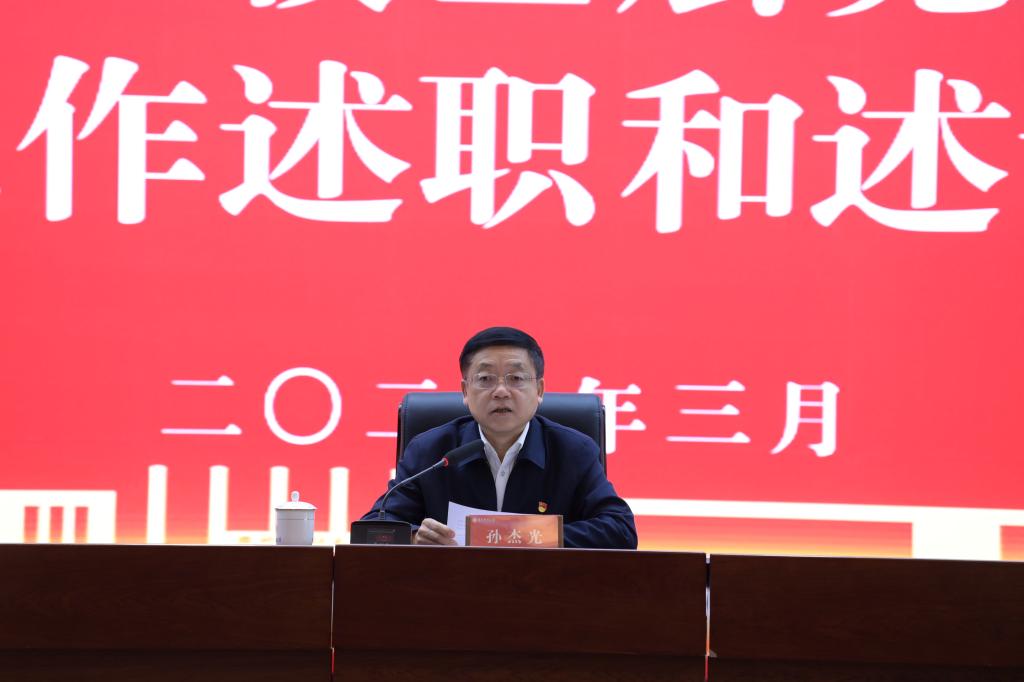 本网讯(党委组织部 供稿)3月6日下午,Beat365中文官方网站2023年度全校基层党组织书记抓基层党建工作述职和述责述廉评议会在新经济(数字经济)创新创业实训中心报告厅召开。学校领导班子成员、学校党建工作领导小组成员、基层党组织书记和基层党员干部代表参加了会议。会议由党委书记孙杰光主持。
