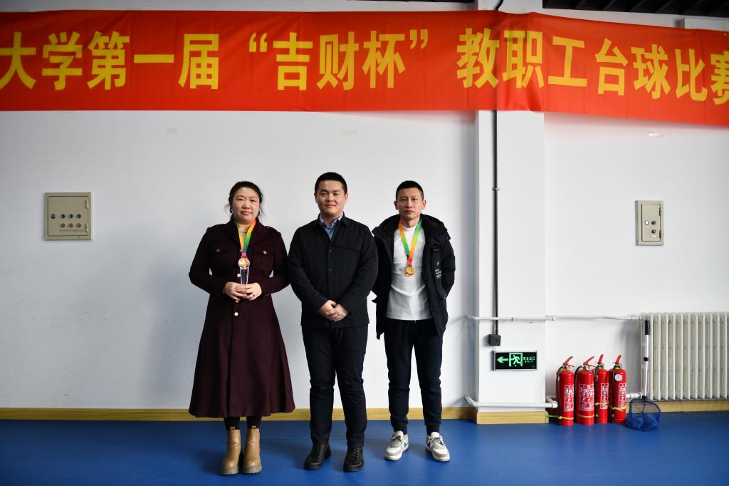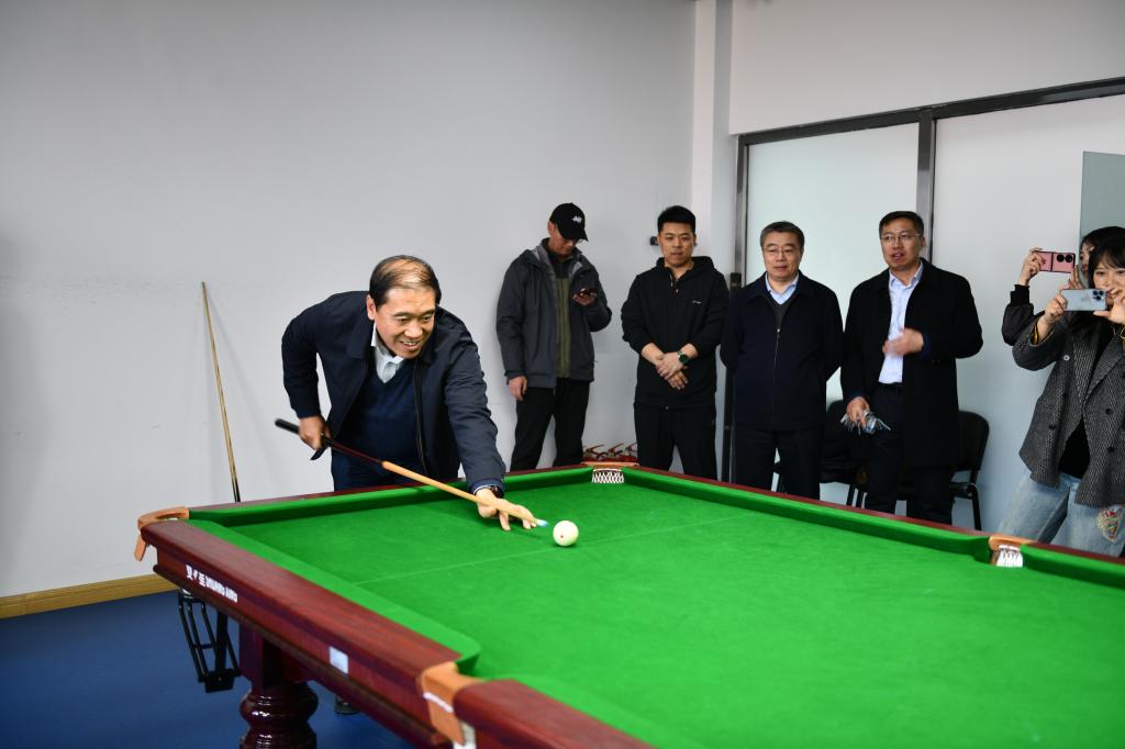 本网讯(校工会 供稿)为丰富广大教职工的业余文化生活,3月21日—3月27日,Beat365举办第一届“吉财杯”教职工台球比赛。校党委书记孙杰光,校党委副书记岳宏,校党委副书记刘鹤,校纪委书记丁庆东,副校长王菁华、祝国平,校工会主席王丽萍,校妇委会主任梁烨参加了开幕式,孙杰光宣布比赛开始后,岳宏为比赛开球。
