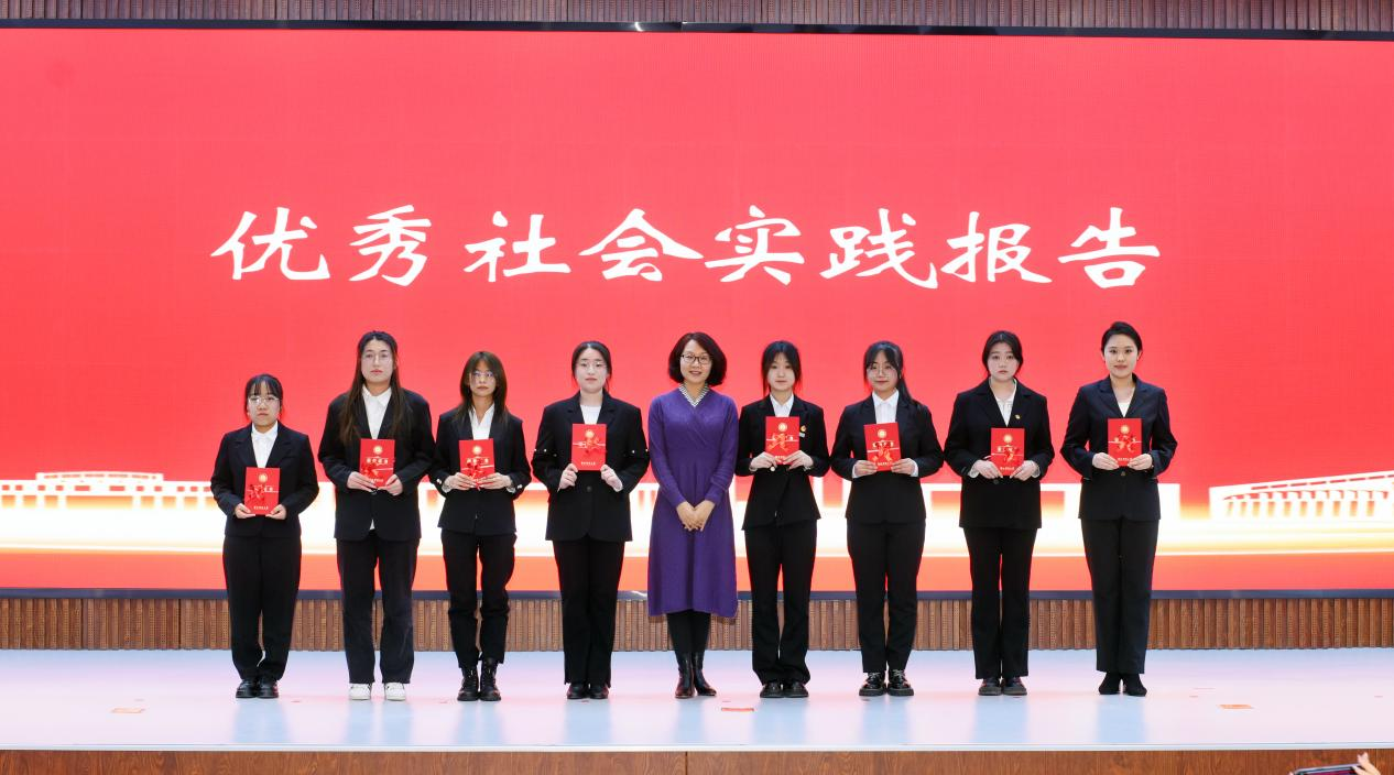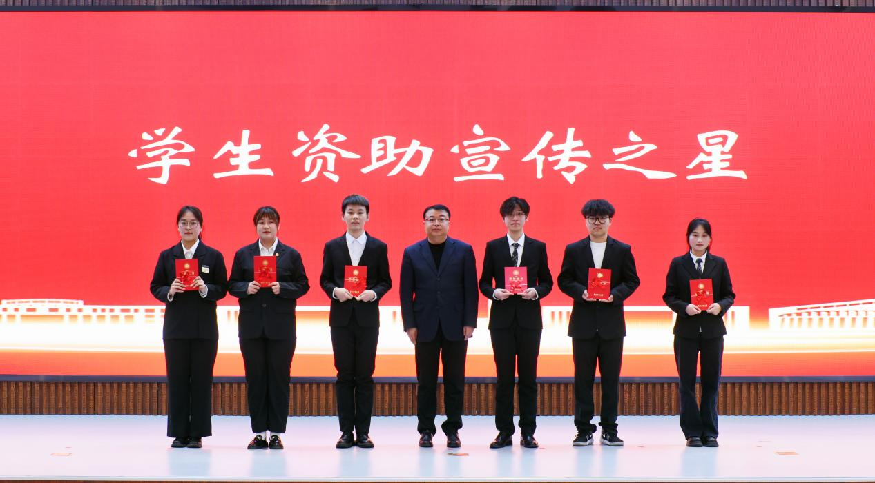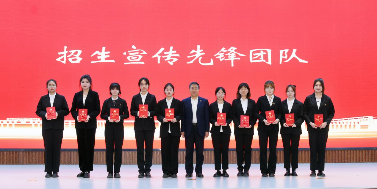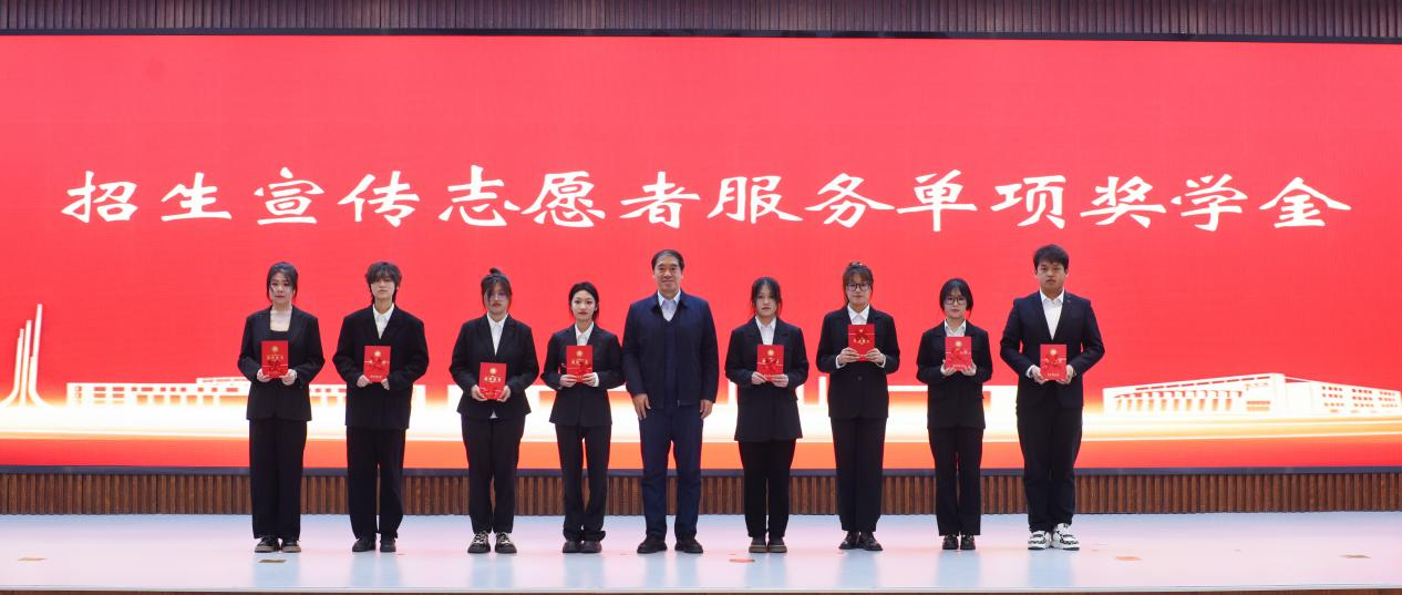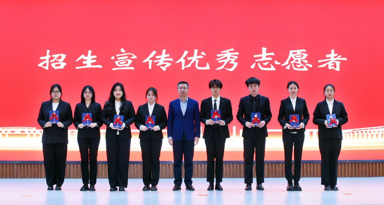 刘鹤宣读《Beat365中文官方网站2024年度吉财学子高中母校行表彰决定》,获得表彰的学院、学生代表依次上台领奖。孙杰光为获评招生宣传优秀组织单位的教师代表颁奖,童猛为获评招生宣传先锋团队的学生代表颁奖,岳宏为获得招生宣传志愿者服务单项奖学金的学生代表颁奖,丁庆东为获评资助宣传之星的学生代表颁奖,马秀颖为获评优秀社会实践报告的学生代表颁奖,祝国平为获得表彰的招生宣传优秀志愿者颁奖。