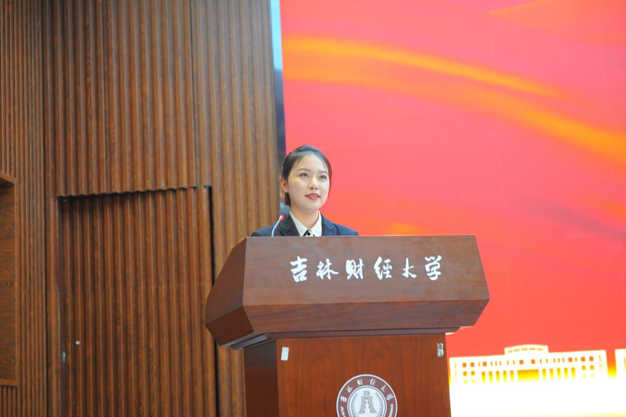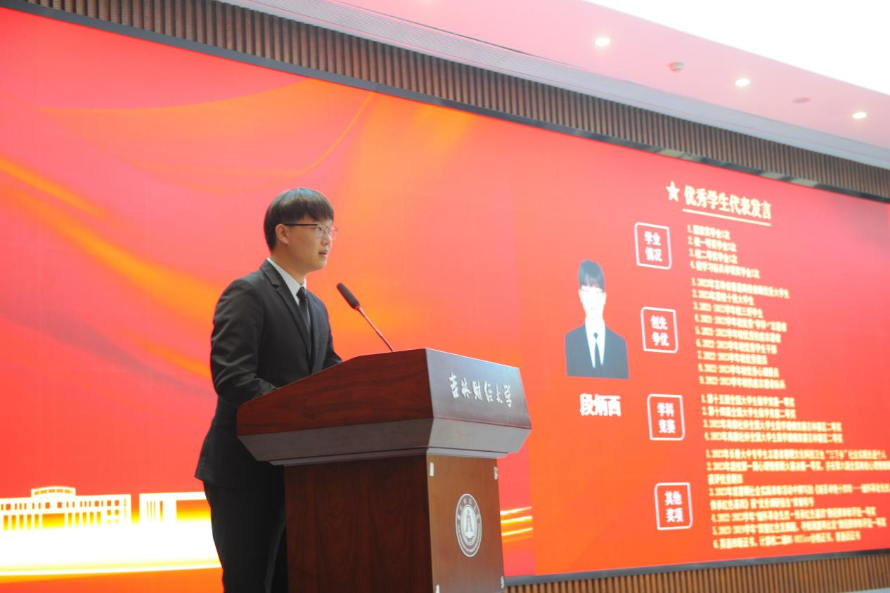 会计学院大三学生叶雨薇、应用数学学院大三学生段炳西作为Beat365中文官方网站2023年度十佳大学生代表上台发言,鼓励吉财学子们要坚定理想信念、拥有家国情怀,常怀感恩之心,锤炼品德修为,传承母校的荣誉,更要继承发扬母校的责任。