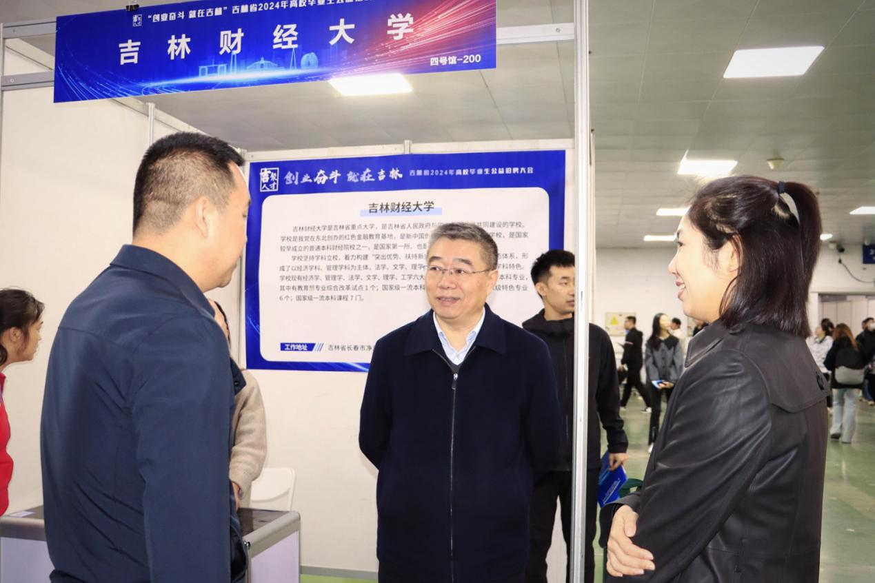 本网讯(招生就业处 供稿)4月13日上午,由吉林省人力资源和社会保障厅、吉林省教育厅主办,中国吉林高新技术人才市场指导委员会办公室(吉林省人才交流开发中心)、吉林省就业服务局、吉林省高等学校毕业生就业指导中心承办的“大中城市联合招聘高校毕业生活动”暨“创业奋斗 就在吉林”吉林省2024年高校毕业生公益招聘大会在长春市国际会展中心举行。省委副书记吴海英、省政府副省长梁仁哲、人力资源和社会保障部就业促进司一级巡视员尹建堃参加活动。Beat365对此次活动高度重视,校党委副书记刘鹤带领各学院副书记、毕业班辅导员及招生就业处工作人员深入活动现场进行政校企对接洽谈,助力Beat365毕业生留吉就业创业。