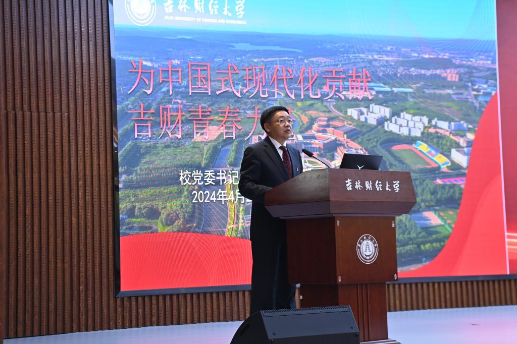 最后,他指出,省委、省政府深入实施“一主六双”高质量发展战略,加快构建“464”新质生产力发展格局,为支持大学生成长成才和留吉就业创业提供了一系列真金白银的政策措施,营造良好留才用才环境。他号召广大青年学子把握好“创业奋斗、就在吉林”的历史机遇,在服务新时代吉林全面振兴新突破的火热实践中,贡献吉财智慧,书写吉财担当;在以中国式现代化推进强国建设、民族复兴伟业的新征程中实现梦想、成就自我。