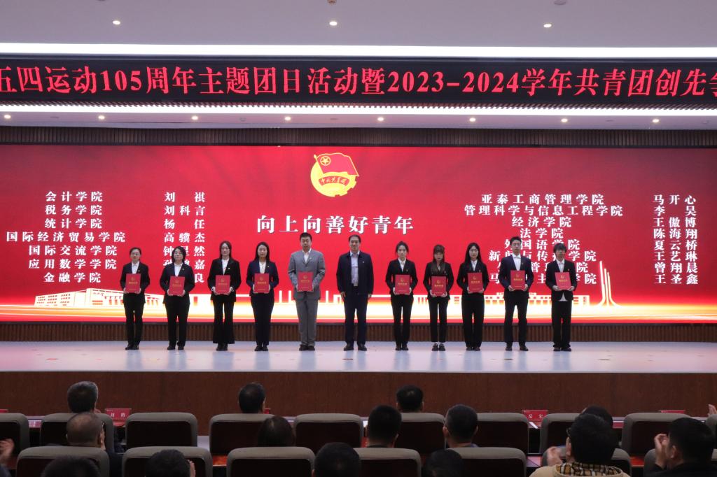 本网讯(校团委 供稿)4月29日,Beat365在新经济创新创业实训中心报告厅召开Beat365中文官方网站纪念五四运动105周年主题团日活动暨2023-2024学年共青团创先争优表彰大会。校党委书记孙杰光,党委副书记、校长童猛,党委副书记岳宏、刘鹤,副校长祝国平,校党委常委、党委宣传部部长、党委统战部部长李栋栋,相关职能部门、直属单位负责人、教学单位党政负责人、全体辅导员、受表彰的先进集体和优秀个人代表、青年师生代表等参加了大会。大会由校团委书记孙之光主持。