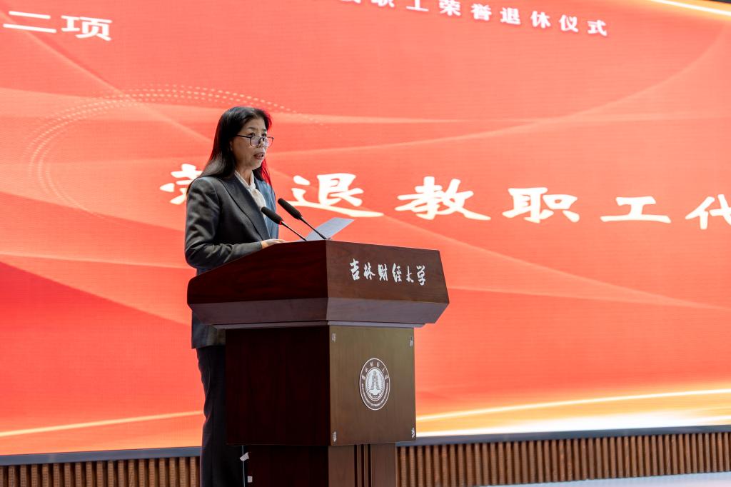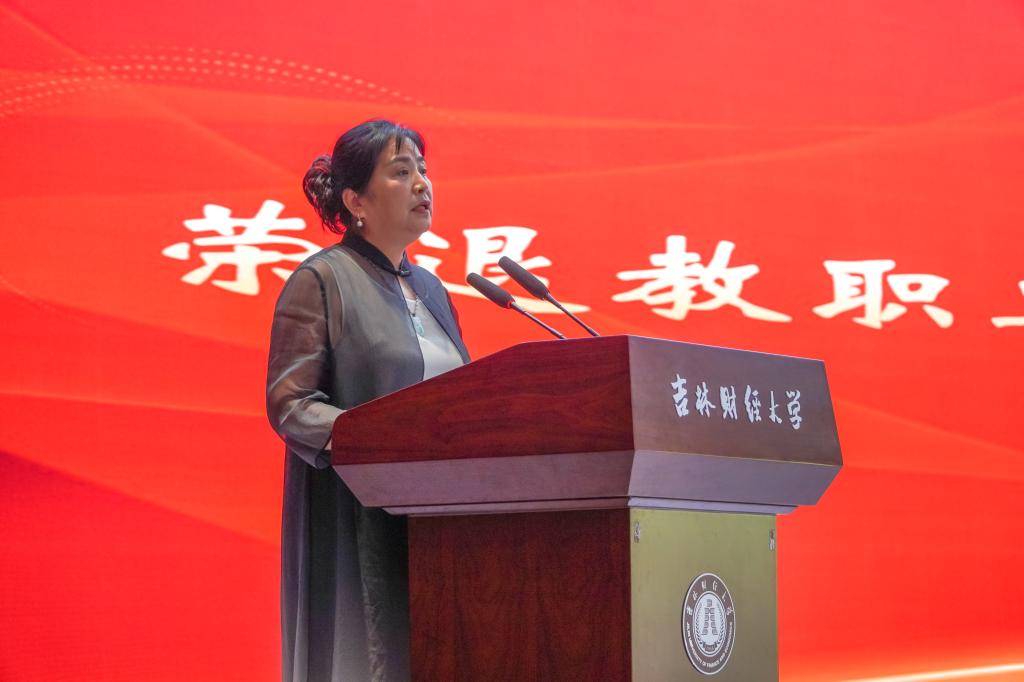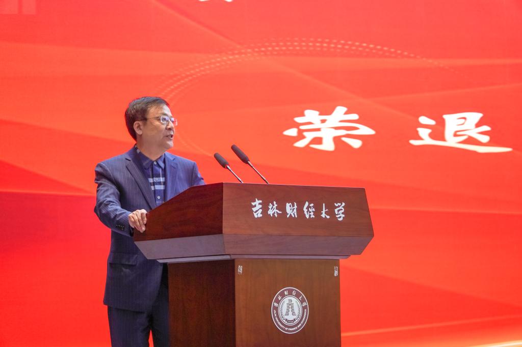 党委书记孙杰光代表学校党委向荣退的教职工表达了尊重之情、感谢之情、留念之情和关爱之情。他指出,教师荣退,是学校事业发展进程中的一件大事。吉财事业发展之所以78年红色传承、生生不息,很重要的一个原因,就是一代又一代的吉财人,一棒又一棒的接力、传承和奉献,兢兢业业,默默耕耘,无私奉献,才使得学校的党的建设、思政教育、人才培养、学科建设、科学研究、社会服务和文化传承、国际合作交流等领域,有了长足的进步与发展,取得了丰硕的成果。老教工、老同志默默无私奉献、孜孜不倦耕耘的精神是学校的宝贵财富,是吉财未来发展的精神动力。