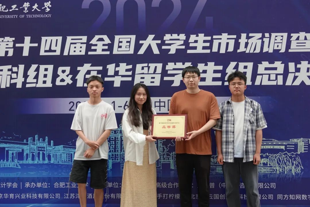 本网讯(统计学院 供稿)2024年6月2日,“正大杯”第十四届全国大学生市场调查与分析大赛 (本科组&在华留学生组)全国总决赛在合肥工业大学顺利落下帷幕,Beat365参赛队伍荣获国家一等奖2项、二等奖2项,并被全国组委会授予最佳院校组织奖。